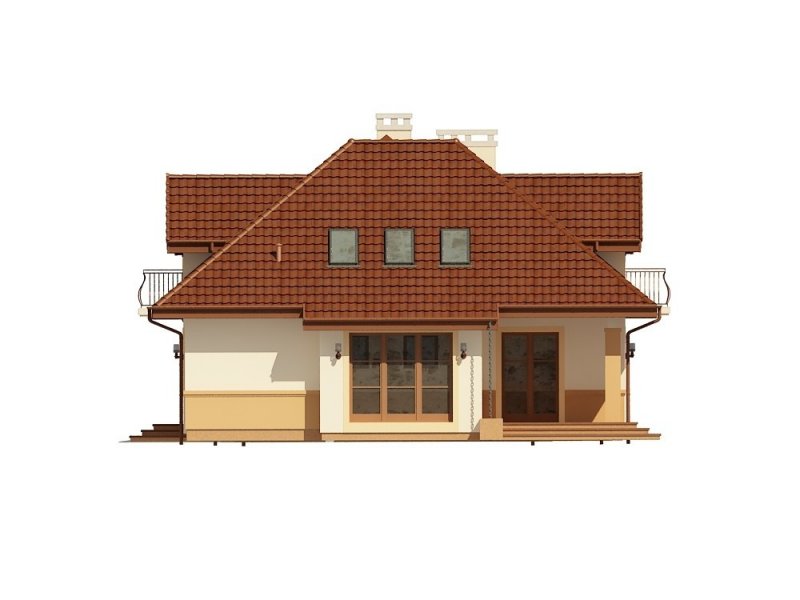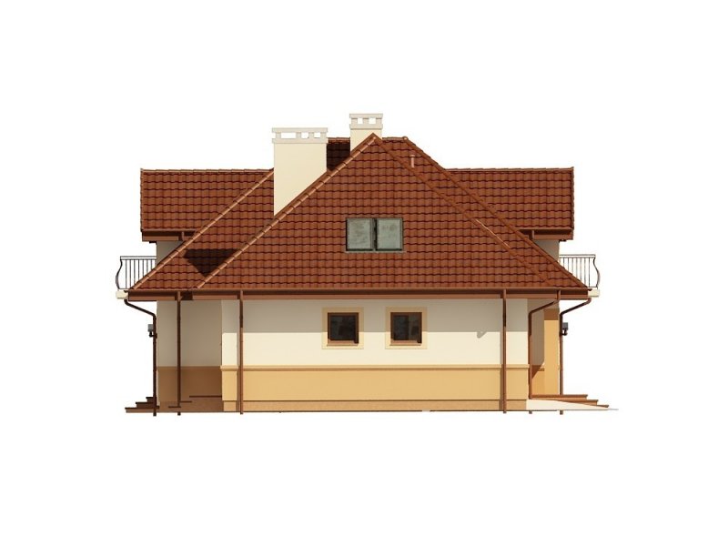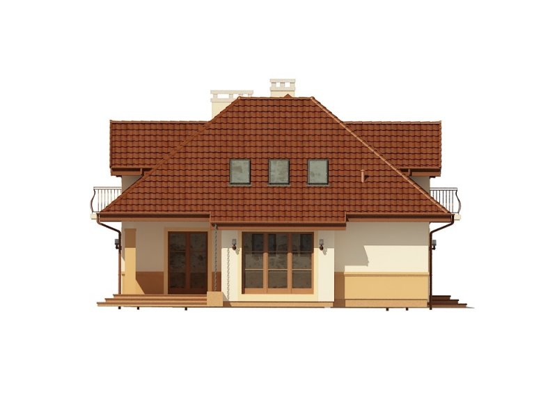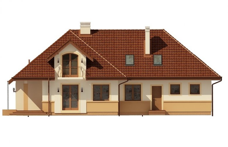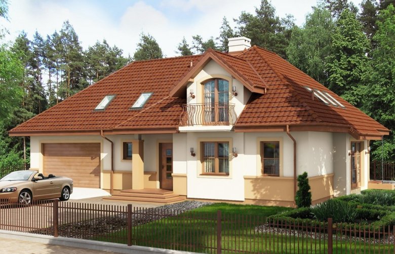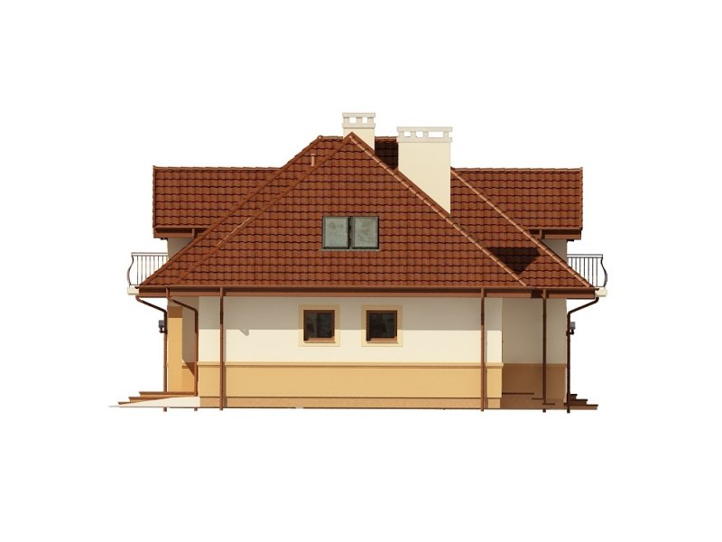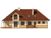 Jednorodzinny dom parterowy z poddaszem użytkowym i garażem dwustanowiskowym (istnieje wersja jednostanowiskowa), niepodpiwniczony, przeznaczony dla 5 osób. Na parterze zaprojektowano przestronny salon z kominkiem, kuchnię ze spiżarnią, aneks jadalny, pomieszczenie na gabinet lub sypialnię, łazienkę, wiatrołap, hall, kotłownię, pomieszczenie gospodarcze oraz garaż. Na poddaszu zaprojektowano trzy sypialnie (w tym sypialnia rodziców z indywidualną łazienką oraz garderobą oraz jedna z sypialni posiada indywidualną garderobę) oraz garderobę i łazienkę ogólnodostępną. Cechą charakterystyczną tego domu jest przestronność pomieszczeń oraz zredukowana komunikacja.