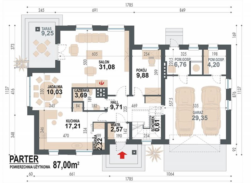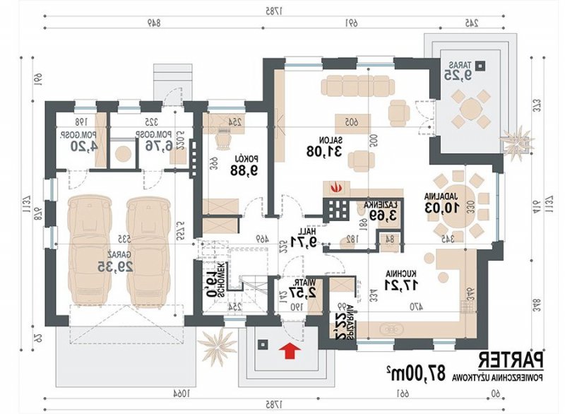 - Min. wymiary działki 25.85x19.37 m