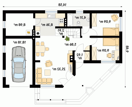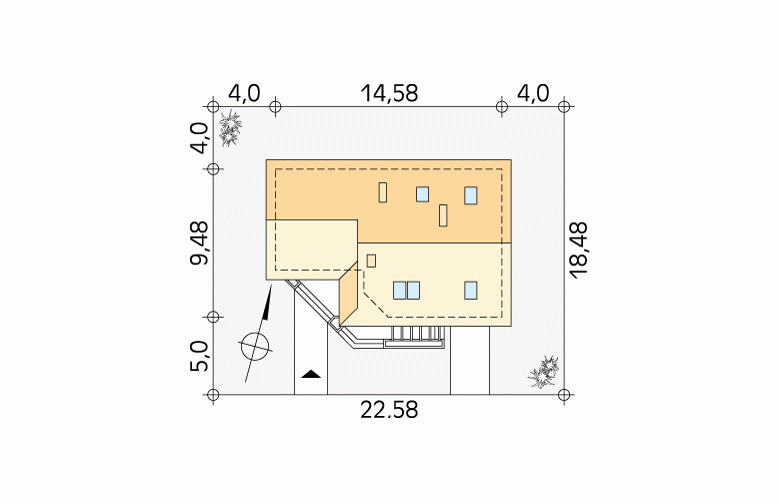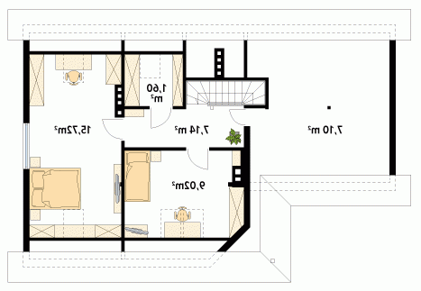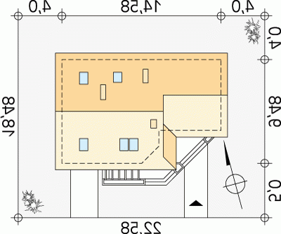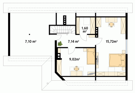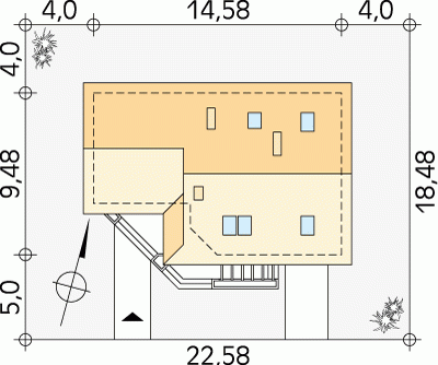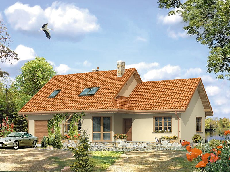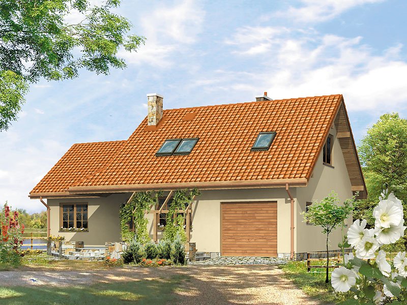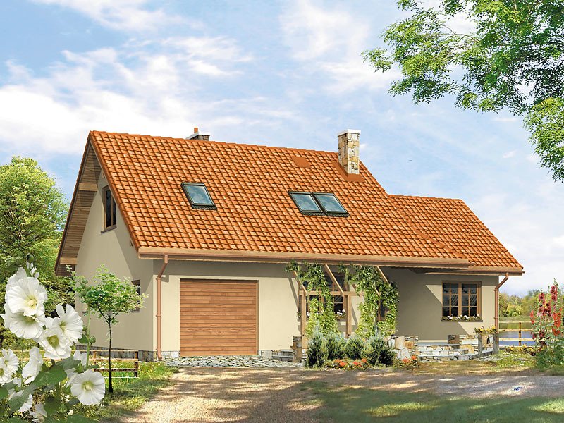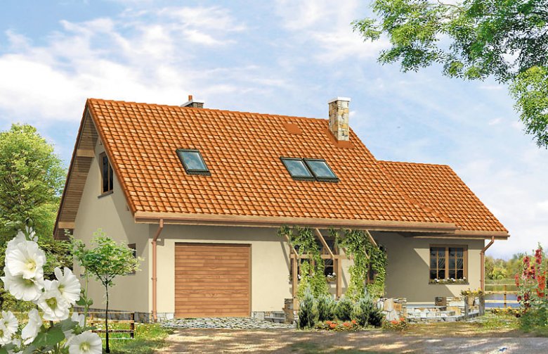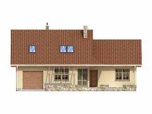 Mały dom jednorodzinny z niewielkim użytkowym poddaszem. Przeznaczony dla 3 – 4-osobowej rodziny.