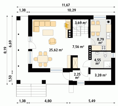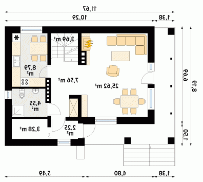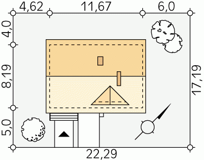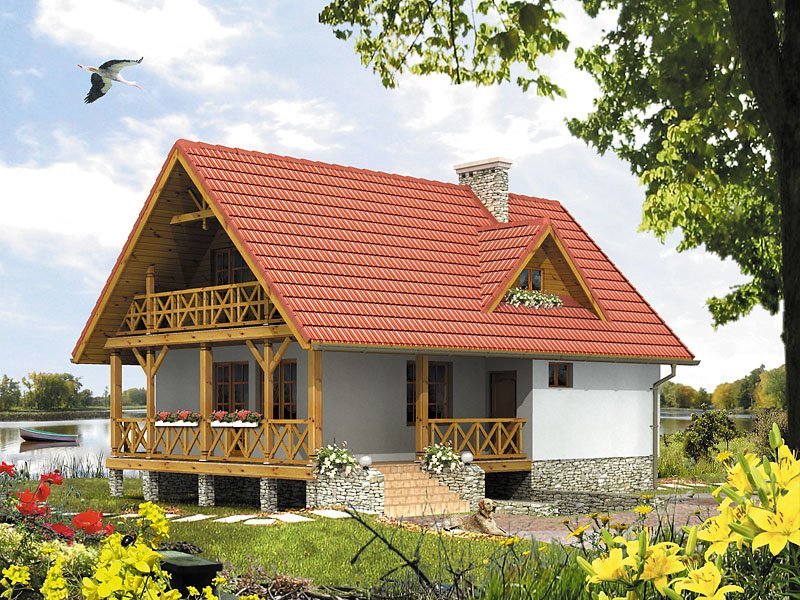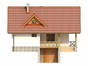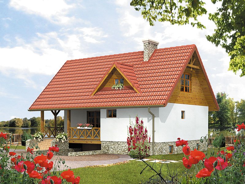 Wolno stojący domek z użytkowym poddaszem i całkowitym podpiwniczeniem. Niewielki, prosty w budowie dom dla 3 – 4 osób. Istnieje wersja domu letniskowego.