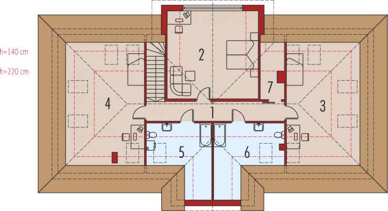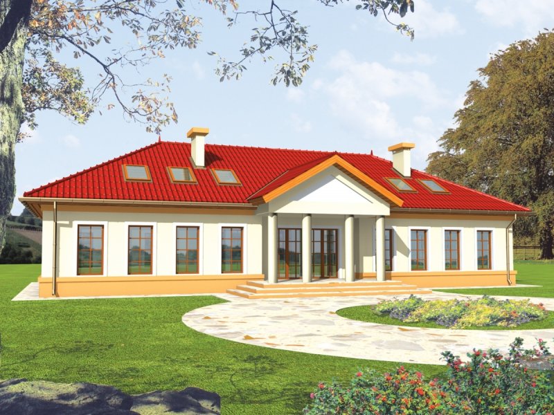 Dom z użytkowym poddaszem niepodpiwniczony przeznaczony dla 4-5 osobowej rodziny. Klasyczną bryłę dworku z kolumnadą przy wejściu przekryto dachem kopertowym. Bogato zaaranżowana przestrzeń parteru z centralnym wyjściem na duży taras zaspokoi oczekiwania nawet najbardziej wybrednych mieszkańców. Na poddaszu usytowano trzy wygodne sypialnie i dwie łazienki.