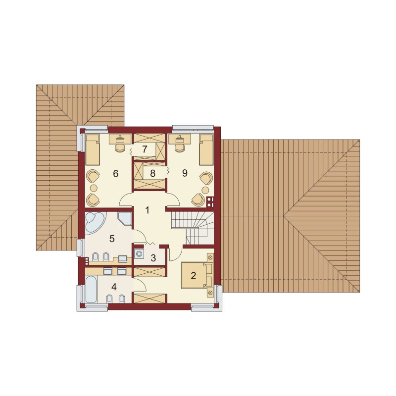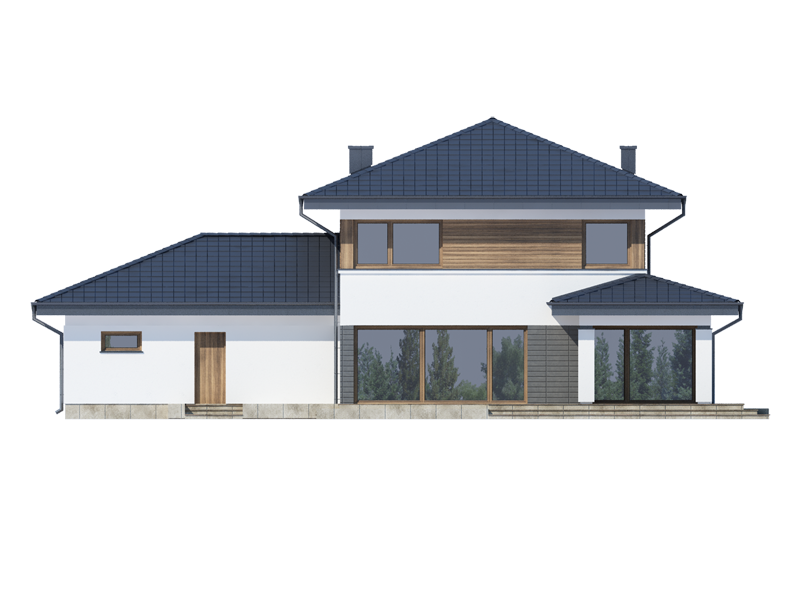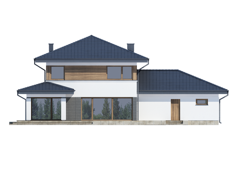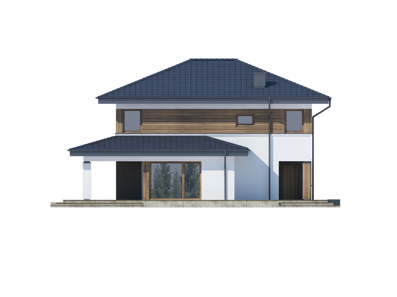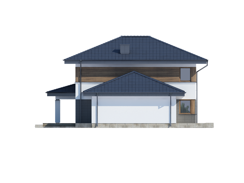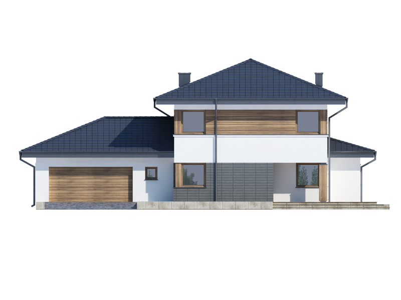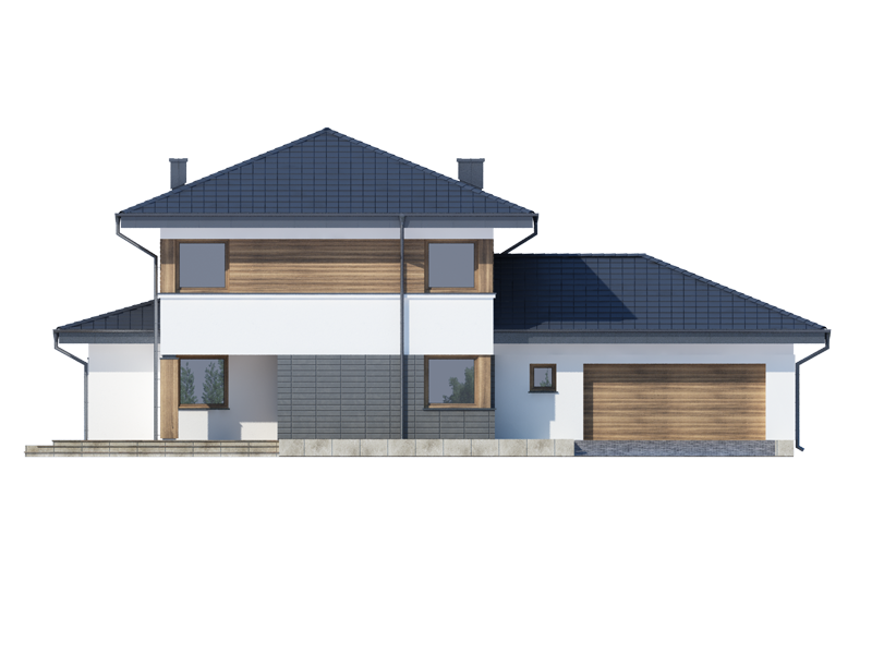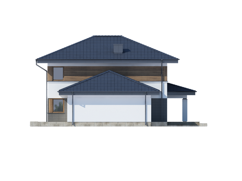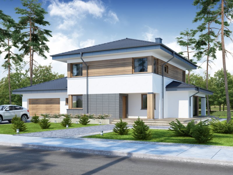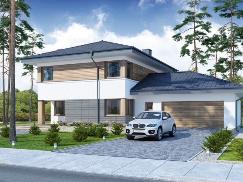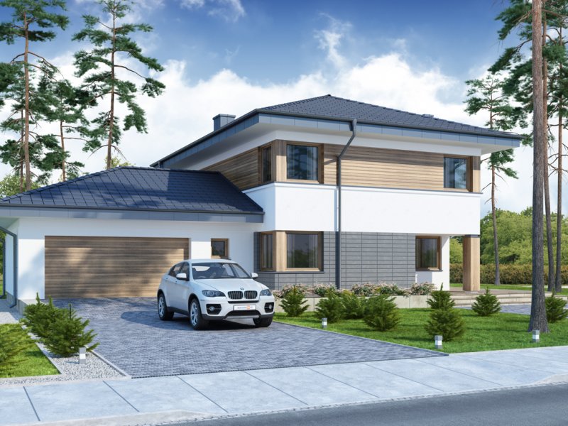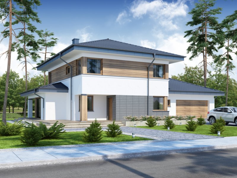 Telmun 2 to przestrzenny, piętrowy dom przeznaczony dla 4-5 osobowej rodziny. Jego rozrzeźbiona bryła, nowoczesna w formie i detalu świetnie wpisuje się zarówno w zabudowę miejską jak i wiejską.