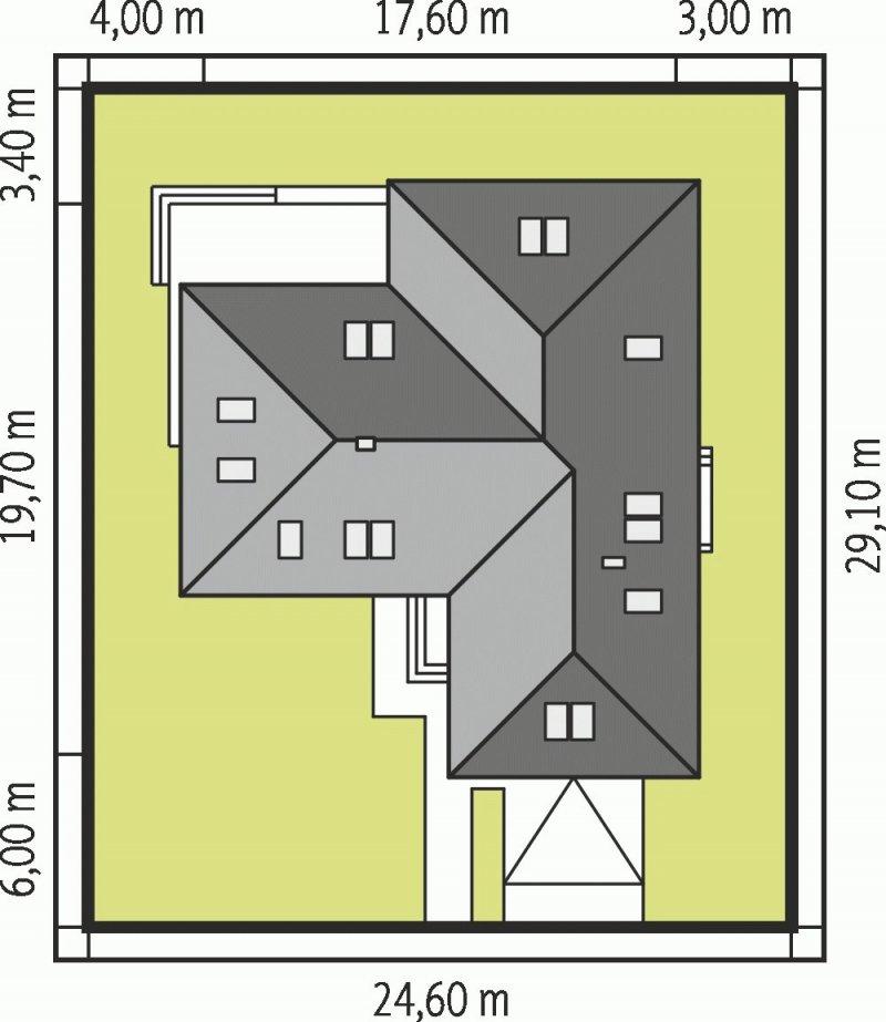 - Min. wymiary działki 24.60x29.10 m