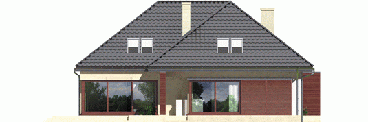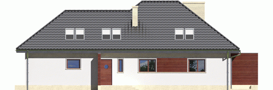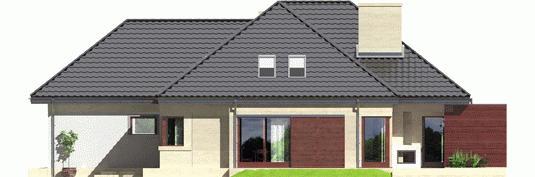 Dom zaprojektowany w technologii murowej ze stropem gęstożebrowym. Schody wewnętrzne drewniane. Dach o konstrukcji drewnianej pokryty dachówką ceramiczną lub cementową. Elewacje wykończono tynkiem mineralnym oraz okładziną kamienną. Cokół kamienny. Stolarka okienna drewniana lub PCV.