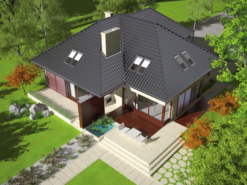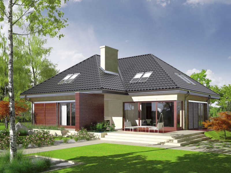 „Teo (mały) G2” to mniejsza wersja projektu „Teo”, która od pierwszego wejrzenia urzeka swoim przytulnym charakterem. Atrakcyjna bryła domu doskonale wpisze się w każde otoczenie. Klasyczna elegancja połączona z nowoczesną formą to doskonała propozycja dla 4-5-osobowej rodziny. Dom wyróżnia komfortowy podział na strefy. Na parterze znajduje się strefa dzienna – przestronny salon z kominkiem, jadalnia oraz kuchnia ze spiżarnią, a także wygodna sypialnia z łazienką i garderobą. Strefę nocną usytuowano na poddaszu. Tworzą ją trzy obszerne sypialnie, w tym jedna z własną garderobą oraz dobrze doświetlona łazienka. Zachwycającym elementem domu „Teo (mały) G2” jest częściowo zadaszony taras otwarty z trzech stron na ogród - idealne miejsce na relaks w towarzystwie rodziny i otulającej dom zieleni.