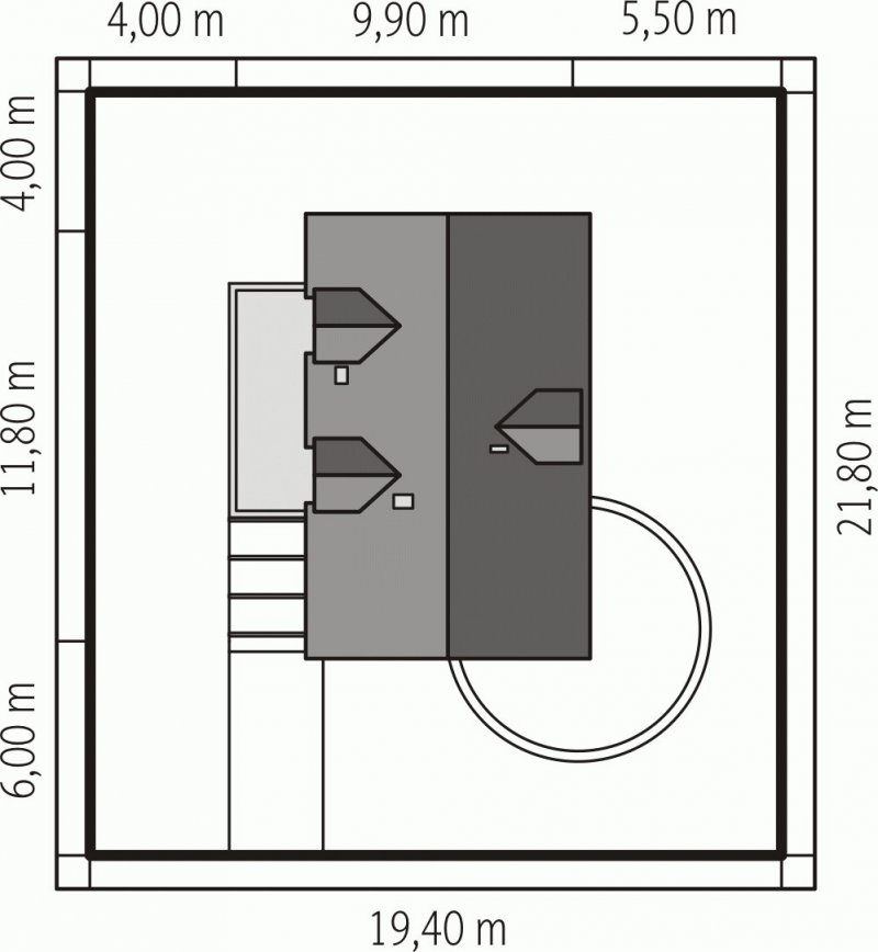 - Min. wymiary działki 19.40x21.80 m