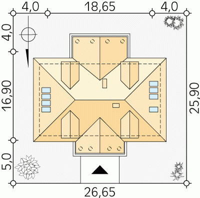 Ściany: 2-warstwowe - POROTHERM 25 cm + styropian, Stropy: żelbetowe, wylewane, Dach: dachówka ceramiczna, kąt nachylenia 35°
