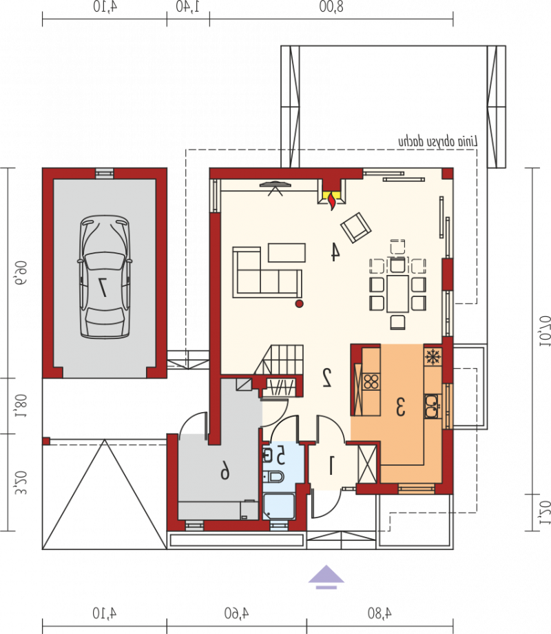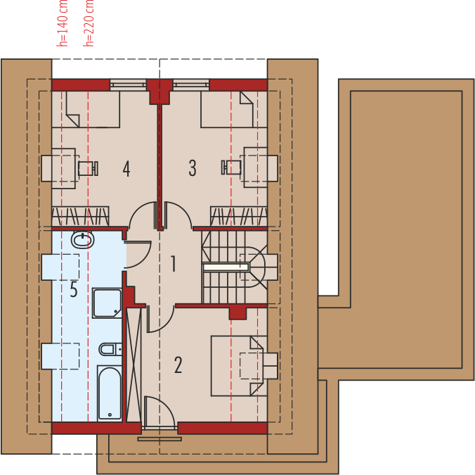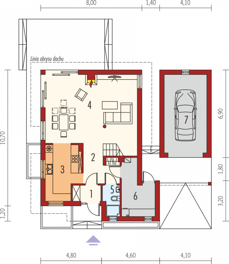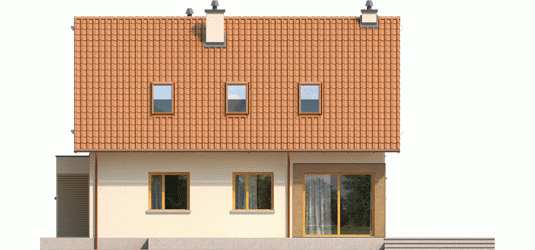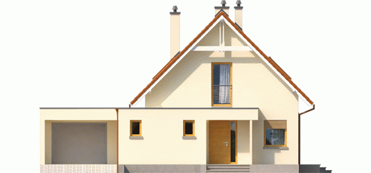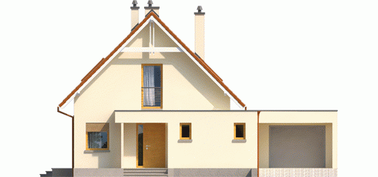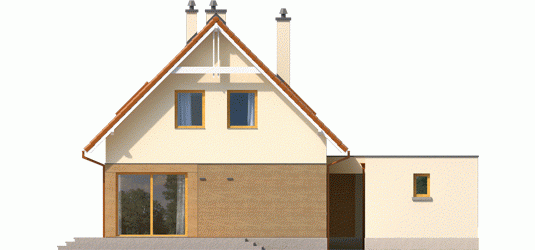 Tiago G1 (wersja B) w morelowo-waniliowej szacie to smakowita propozycja dla miłośników elegancji i sprawdzonych rozwiązań funkcjonalnych. Strefa wejściowa od pierwszego wejrzenia czaruje swoim przytulnym urokiem, zapraszając do wnętrza kwiaty, zgrabnie wspinające się po drewnianym trejażu. Od strony ogrodowej zaplanowano przestronny taras – doskonałe miejsce na relaks w towarzystwie rodziny, przyjaciół i balsamicznej zieleni wokół. Charakterystycznym elementem architektury budynku jest zadaszony łącznik, który w oryginalny sposób integruje dom z garażem. Układ pomieszczeń z czytelnym podziałem na strefy gwarantuje domownikom najwyższy komfort użytkowy.