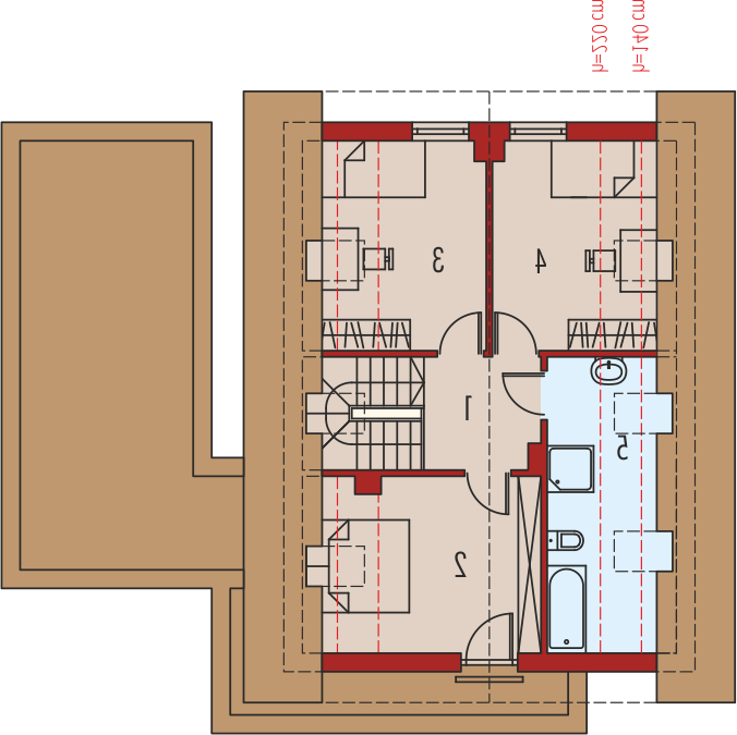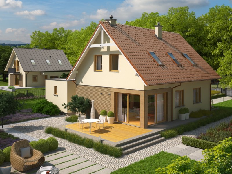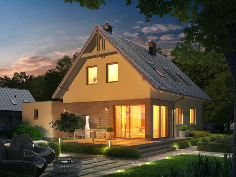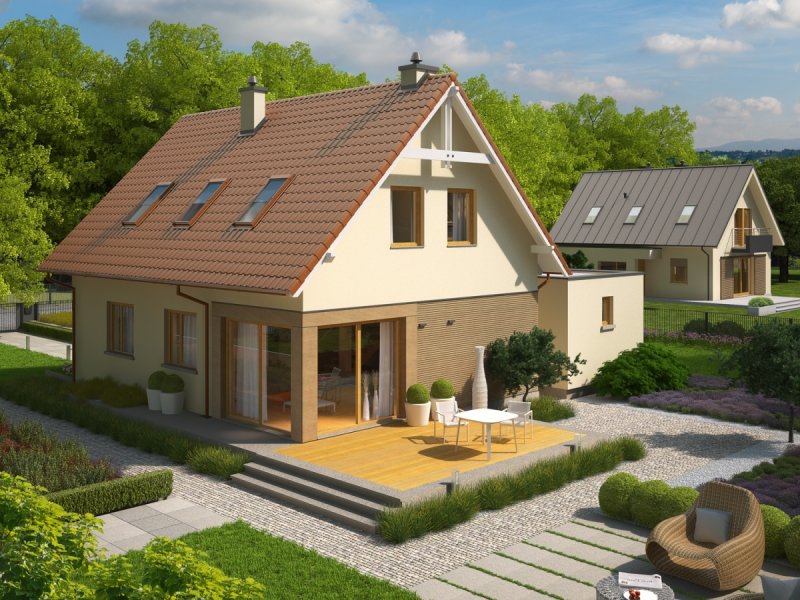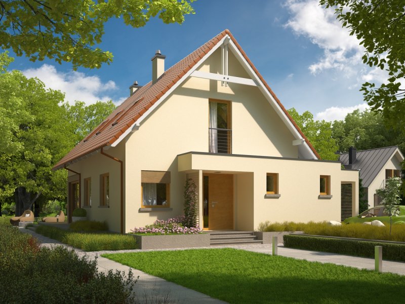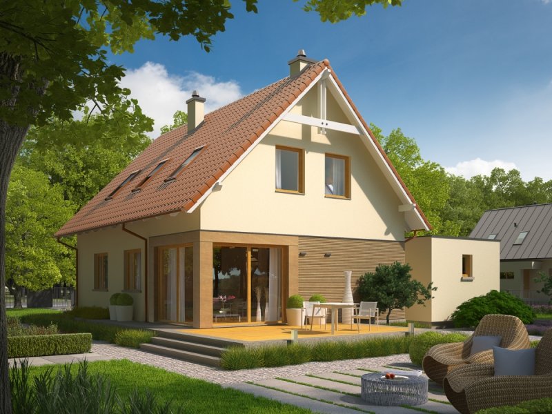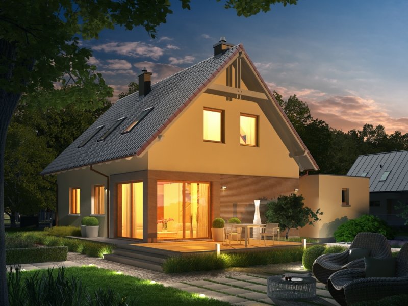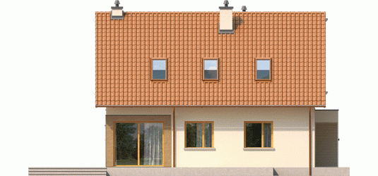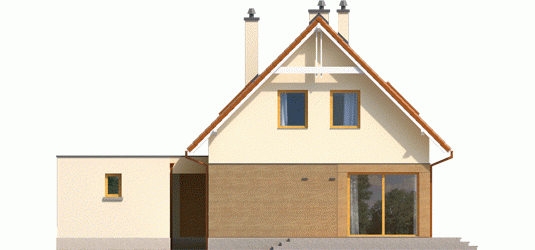 Dom zaprojektowany w technologii murowej ze stropem gęstożebrowym. Schody wewnętrzne drewniane. Dach o konstrukcji drewnianej pokryty dachówką cementową IBF. Elewacje wykończono tynkiem mineralnym. Cokoły kamienne lub wykończone tynkiem akrylowym. Stolarka okienna drewniana lub PCV. Rolety zewnętrzne w systemie CleverBox firmy BeClever.