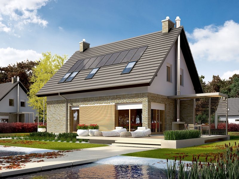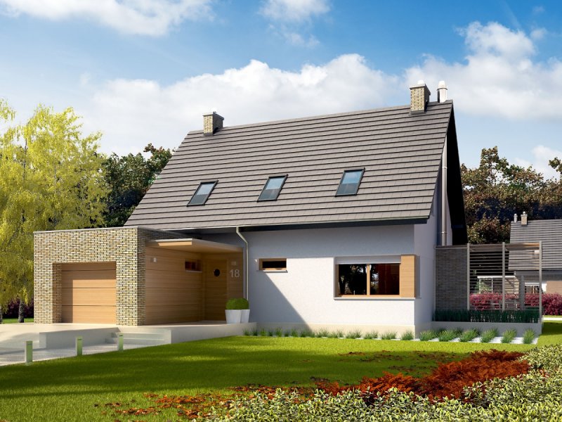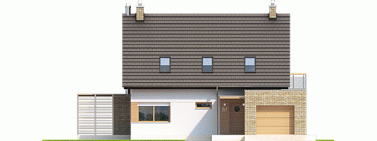 Tobiasz G1 to dom, który swój wyjątkowy charakter zawdzięcza intrygującej miksturze materiałów i kolorów, zastosowanych do wykończenia elewacji. Klasyczna bryła budynku, wzbogacona ciekawą formą garażu, została ubrana w atrakcyjną, klinkierową szatę, która wspólnie z ascetyczną bielą tynku i ciepłym odcieniem drewna tworzy efektowne, nowoczesne trio. Wnętrze z czytelnym podziałem na strefy cieszy swoją funkcjonalnością i atmosferą przytulnej swobody. W sercu domu zaplanowano reprezentacyjny salon, gdzie wieczory rozgrzewa mieszkańcom ognisty taniec refleksów w kominku. Dodatkową strefę wypoczynkową tworzy taras, na którym aromat porannej kawy subtelnie łączy się z zapachem świeżych kwiatów, wprowadzając domowników w nastrój pełen błogiego relaksu. Tobiasz to propozycja dla inwestorów, którzy cenią przestrzeń, kontrastowe zestawienia i urodę detali.