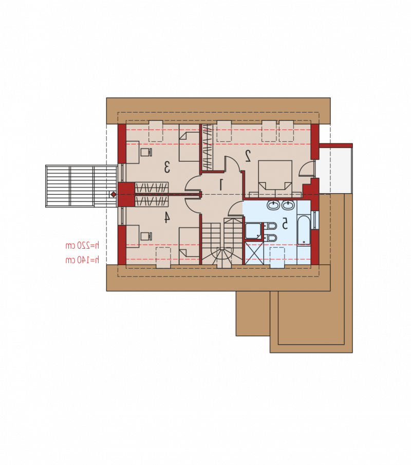 - Dach o konstrukcji drewnianej pokryto dachówką płaską lub inną o podobnych parametrach