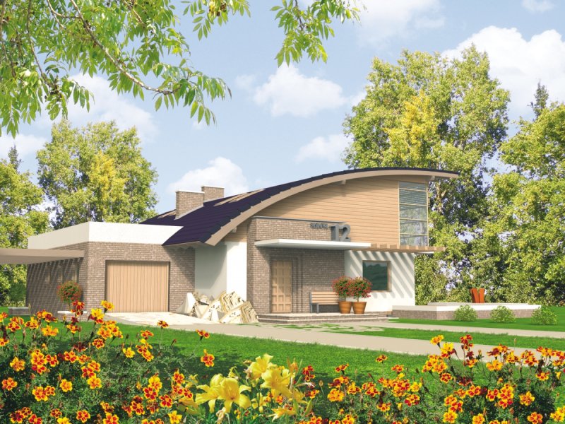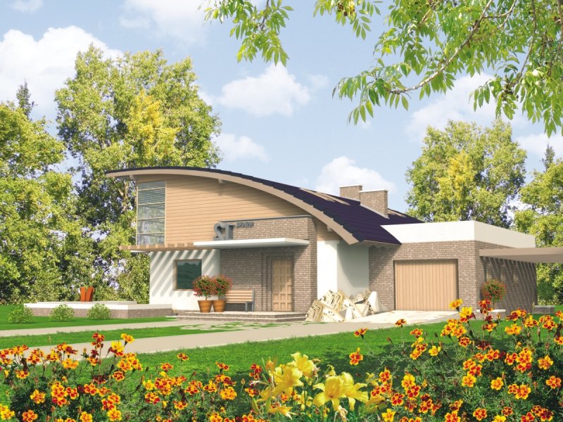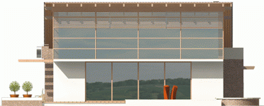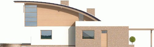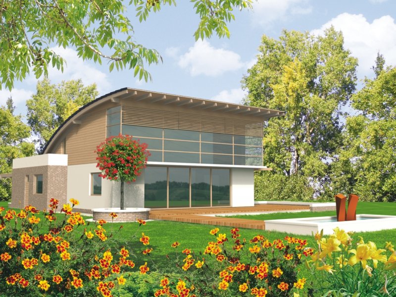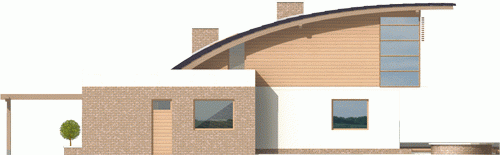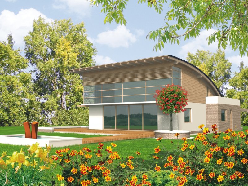 Dom zaprojektowano w technologii murowej ze stropem gęstożebrowym. Elewację wykonano z tynku strukturalnego, okładziny klinkierowej oraz drewnianej. Stolarka okienna drewniana.