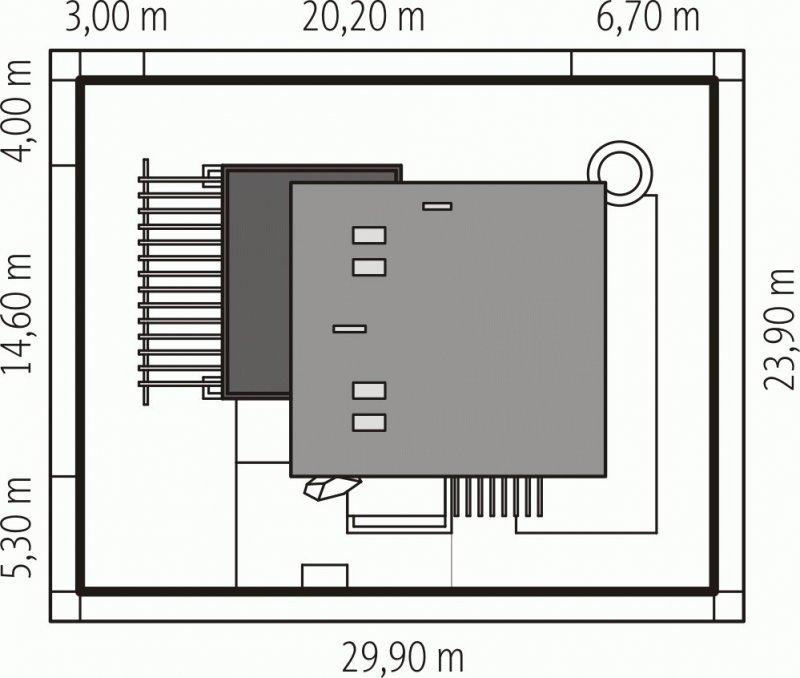 - Min. wymiary działki 29.90x23.90 m