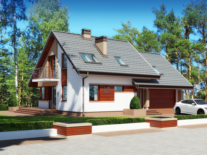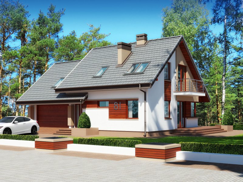 W ofercie występuje również mniejsza wersja domu z garażem na jeden samochód.