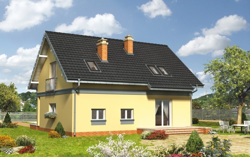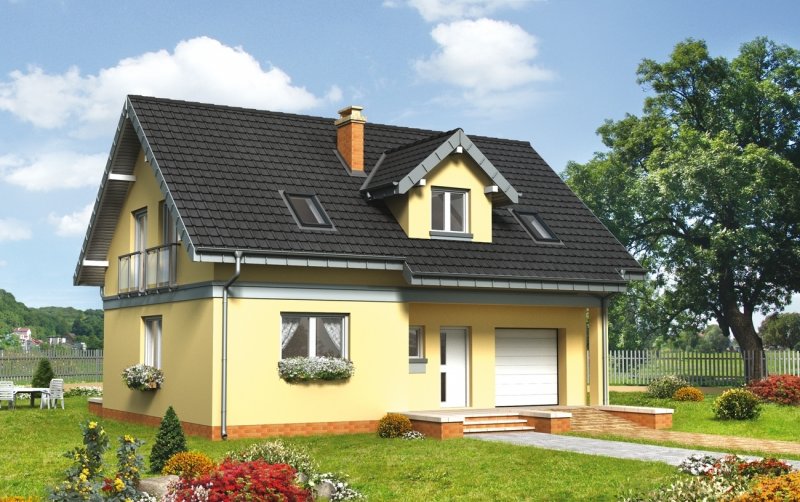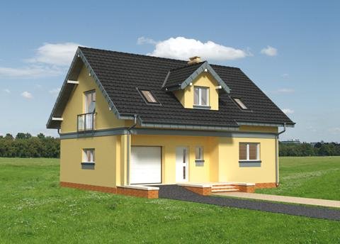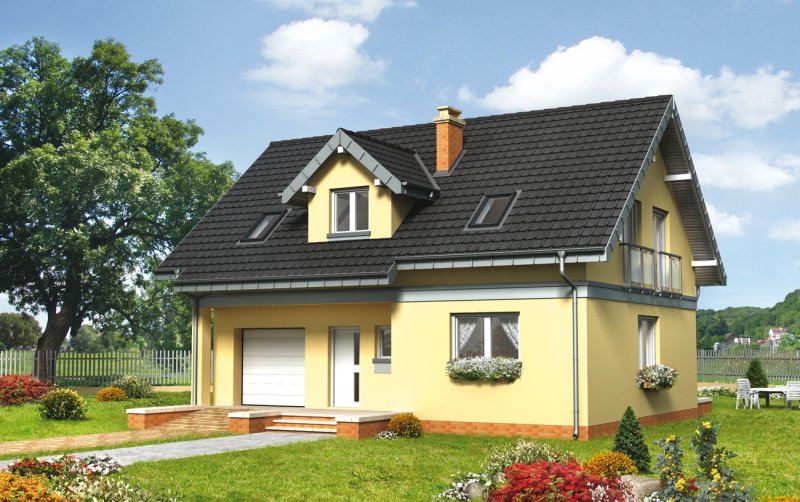Dom parterowy, z użytkowym poddaszem, z garażem.