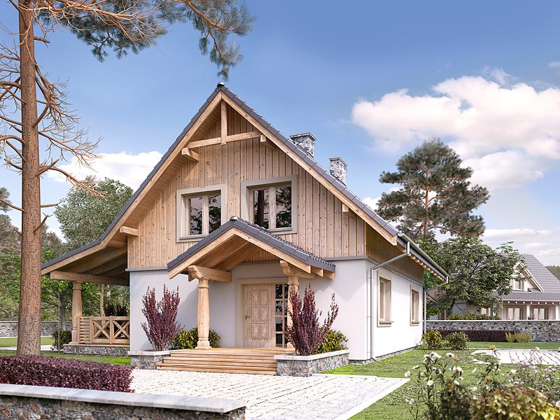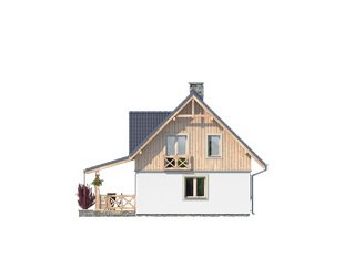 Nieduży letniskowy dom, który z powodzeniem może służyć jako całoroczny dom rekreacyjny. Architektura domu z dużą ilością elementów drewnianych wpasuje się idealnie w istniejącą zabudowę rekreacyjną od morza po góry. Ważnym miejscem w domku letniskowym jest duży zadaszony taras, który będzie świetnym miejscem popołudniowych spotkań. Na poddaszu zaprojektowano trzy duże sypialnie i przestronną łazienkę.