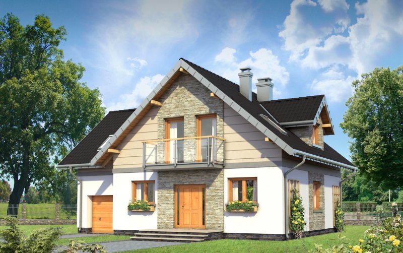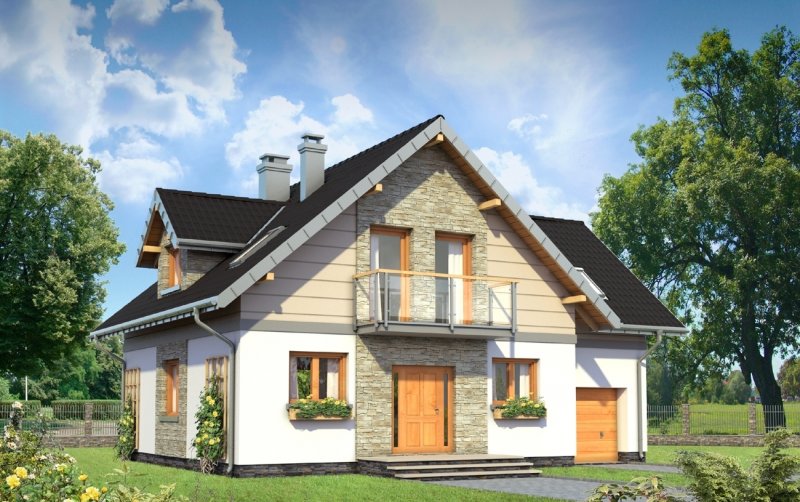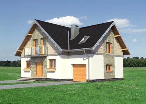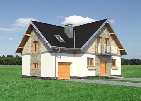 Tryfon to wygodny dom, złożony z części mieszkalnej oraz garażowej, połączonych przejściem w klatce schodowej. Zbudowany jest na planie litery T, ze ścianą szczytową zwróconą na fronton posesji.