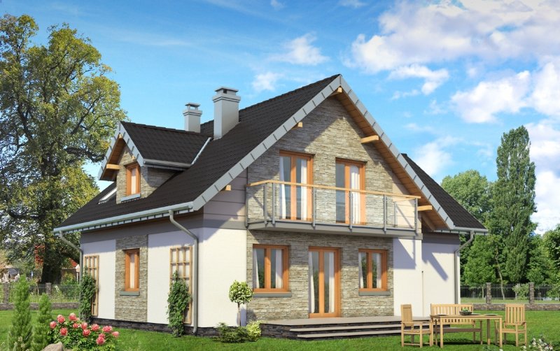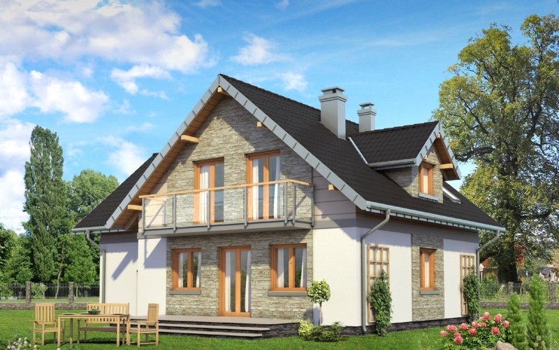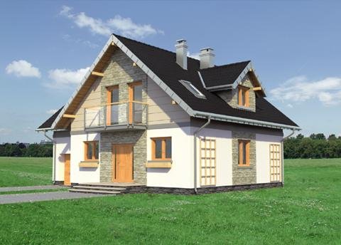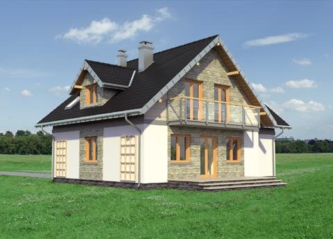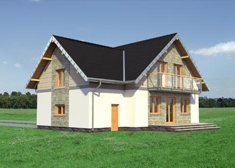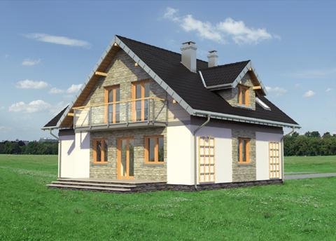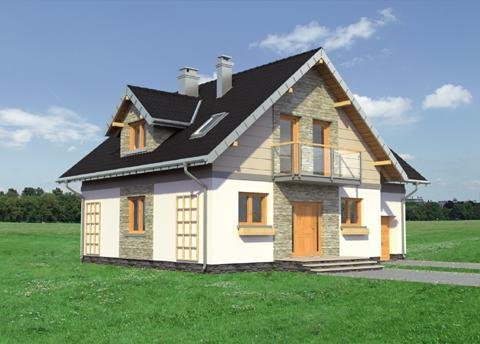 Komfort przestrzeni w Tryfonie podkreśla rozmiar i otwarty charakter salonu, który poprzez hol i klatkę schodową łączy się z dwupoziomowym poddaszem. Dzięki temu strefa nocna, zapewniająca prywatność każdemu z 6 domowników, nie jest izolowana od centrum życia rodzinnego. Projekt przewiduje konstrukcję domu w oparciu o ściany jednorodne. Mając przewagę nad konstrukcjami warstwowymi w tempie wznoszenia i prostocie konstrukcji, gwarantowały zawsze niższe nakłady na robociznę, a więc mniejszy koszt budowy. W projekcie domu Tryfon zastosowano nowoczesny ciepły, szczelinowy ceramiczny pustak Heluz.