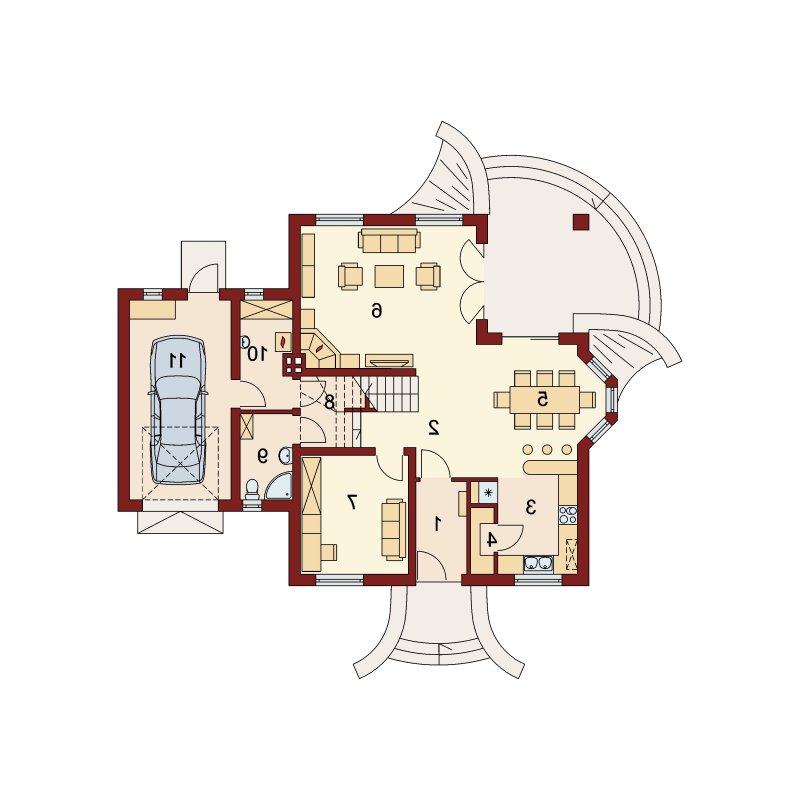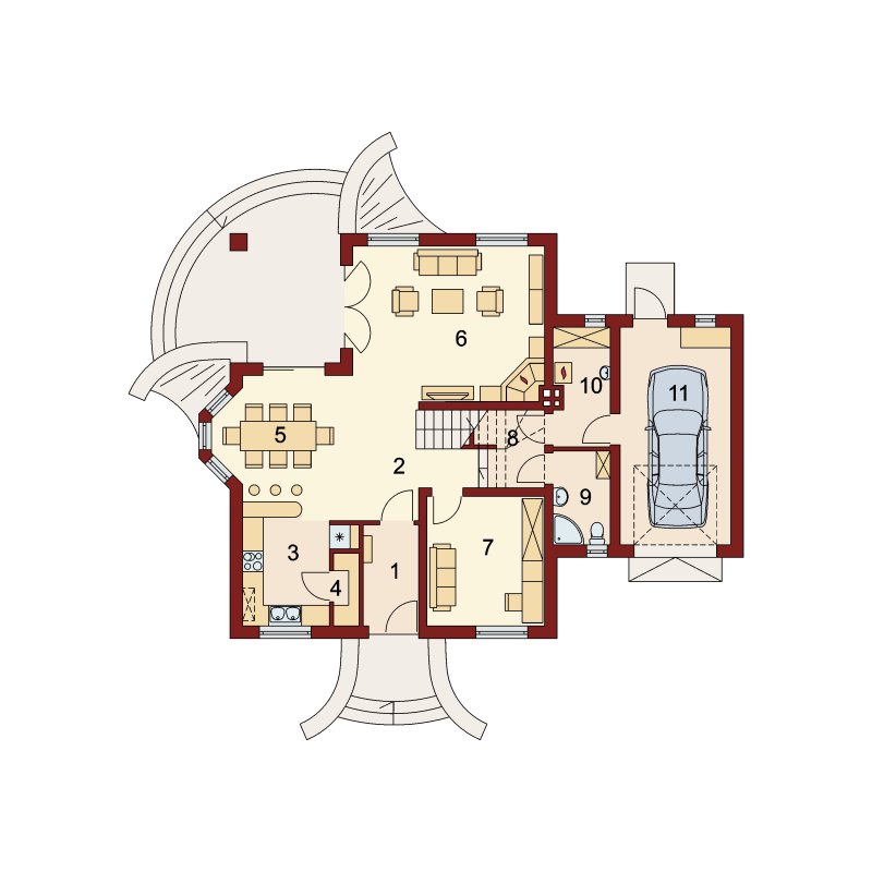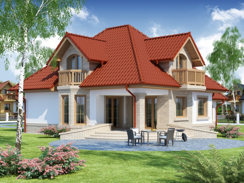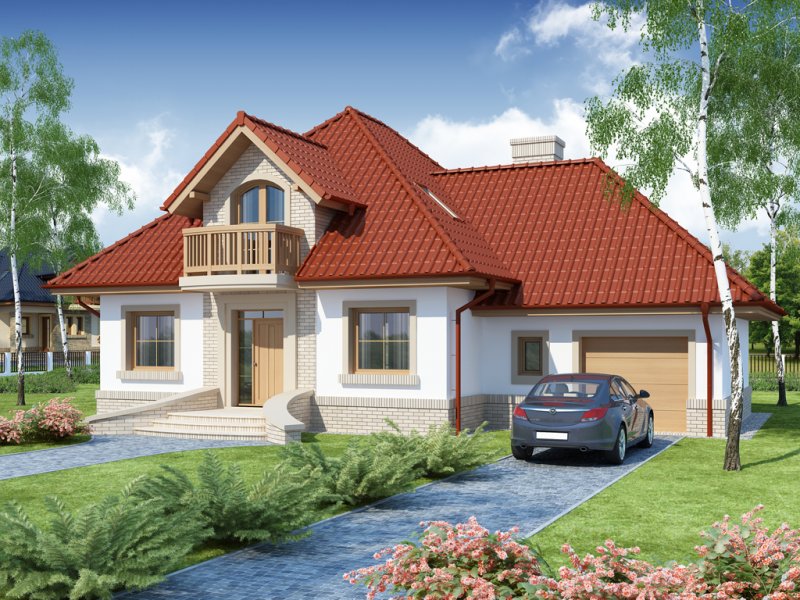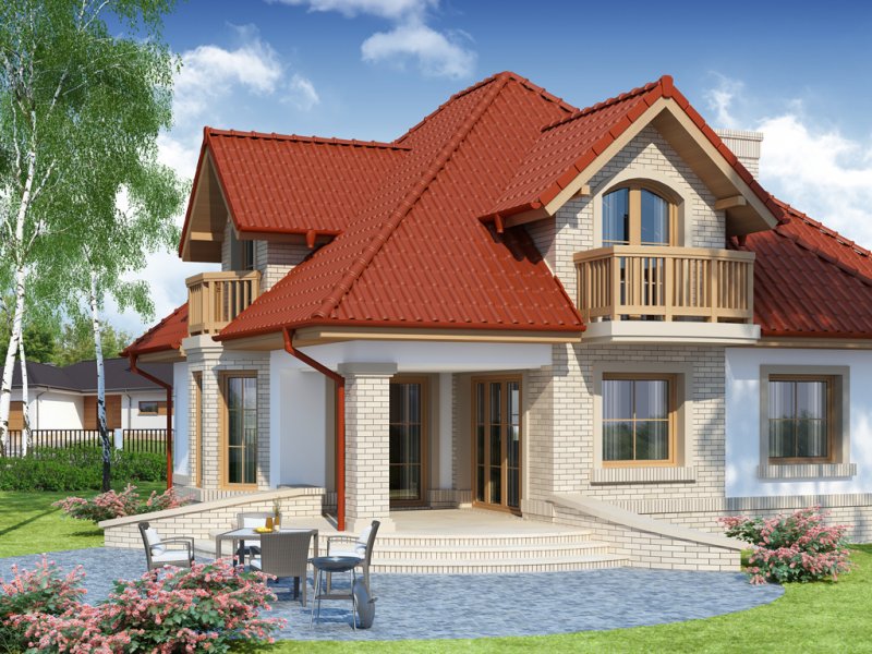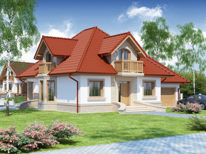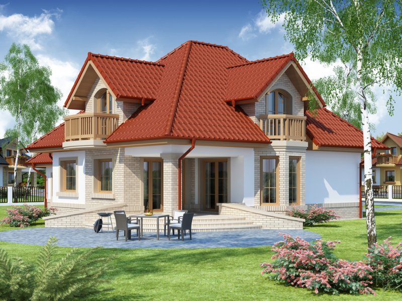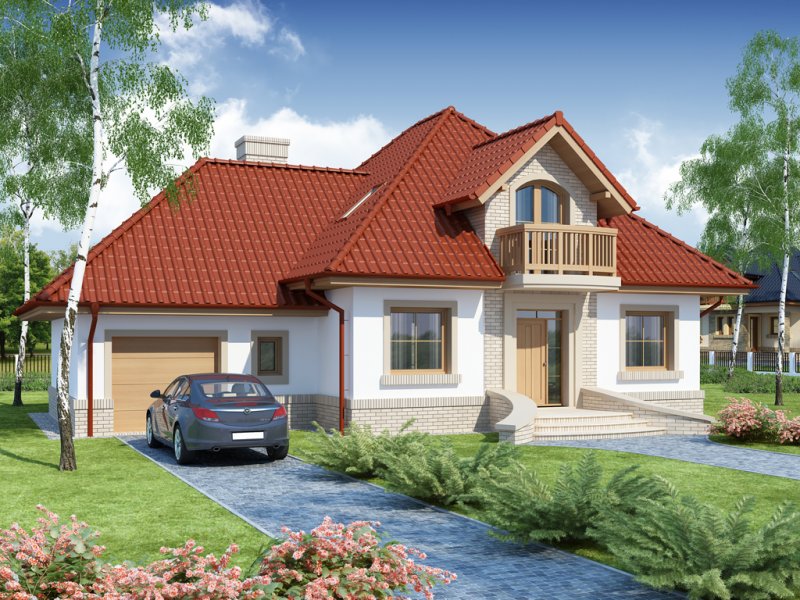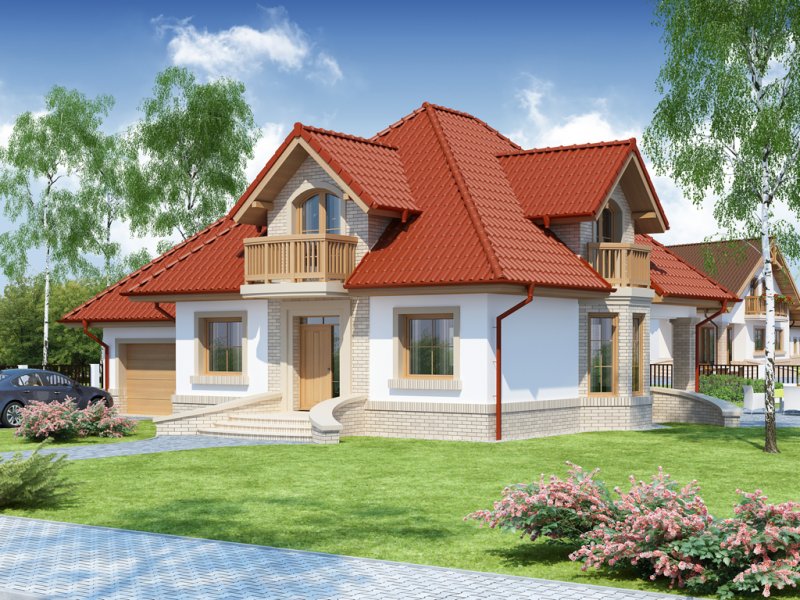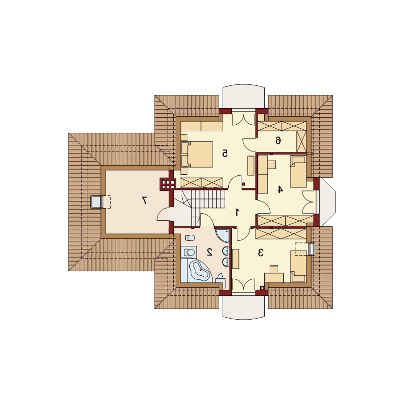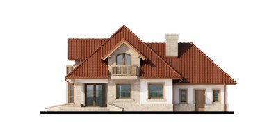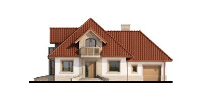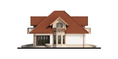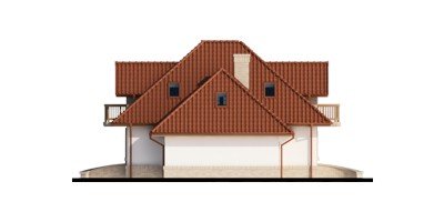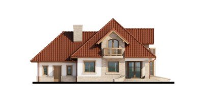 Wygodny dom dla 4-5 osobowej rodziny z ładnymi lukarnami wyposażonymi w balkony. Spora liczba przeszkleń na parterze zapewnia dobre doświetlenie światłem słonecznym całej przestrzeni, w której są wydzielone: salon z efektownym, narożnym kominkiem, jadalnia ,oraz kuchnia z barkiem od strony pokoju. Znajdująca się w kuchni spiżarkę możemy zamienić na ciąg wysokich szafek, a same pomieszczenie kuchenne zamknąć ścianką działową, bądź drzwiami przesuwnymi. Dodatkowy, znajdujący się na prawo od wiatrołapu, pokój ,może być sypialnią, pokojem gościnnym, czy gabinetem. Cześć gospodarcza jest czytelnie oddzielona od reszty pomieszczeń i w pełni funkcjonalna. Na poddaszu umieszczono trzy sypialnie w tym jedną z garderobą, oraz łazienkę mieszczącą komfortowej wielkości wannę oraz pozostałą ceramikę sanitarną. Z klatki schodowej można wejść na strych, który przy niewielkim nakładzie adaptacyjnym stanie się pomieszczeniem ,którego być może zabrakło (pokój hobby, siłownia, dodatkowa sypialnia itd.).