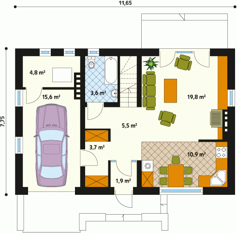 Mały dom mieszkalny przeznaczony dla 4-osobowej rodziny.