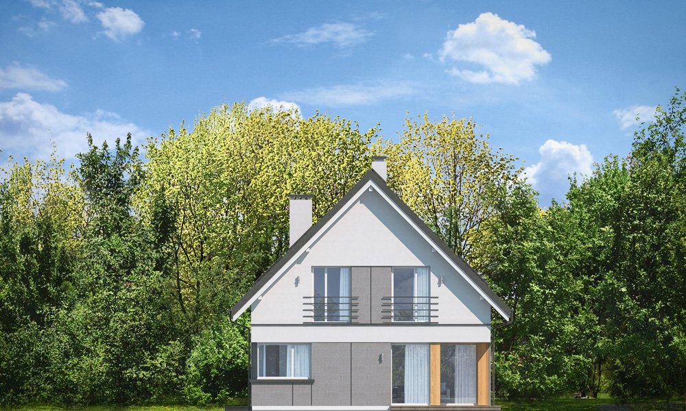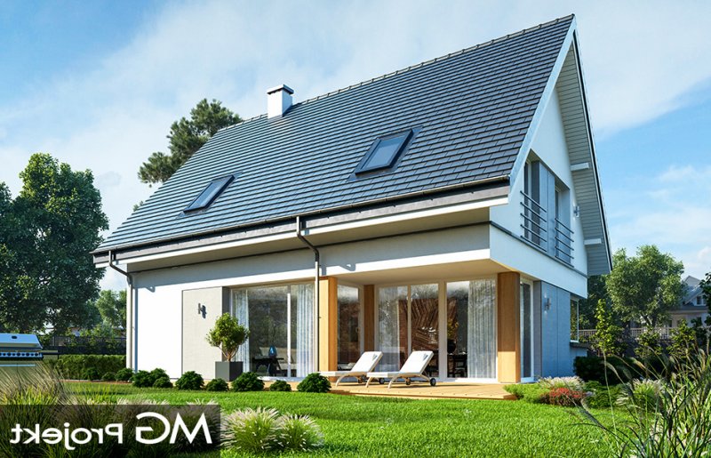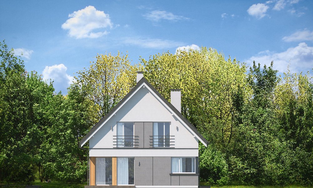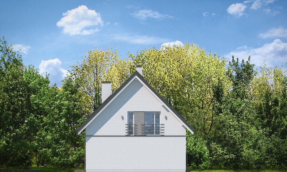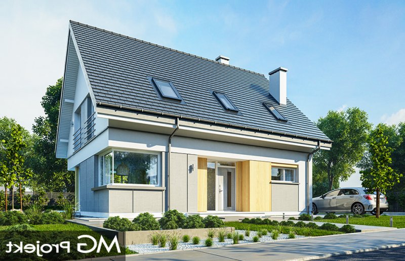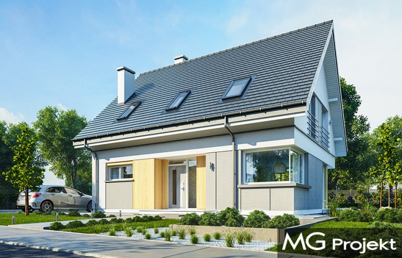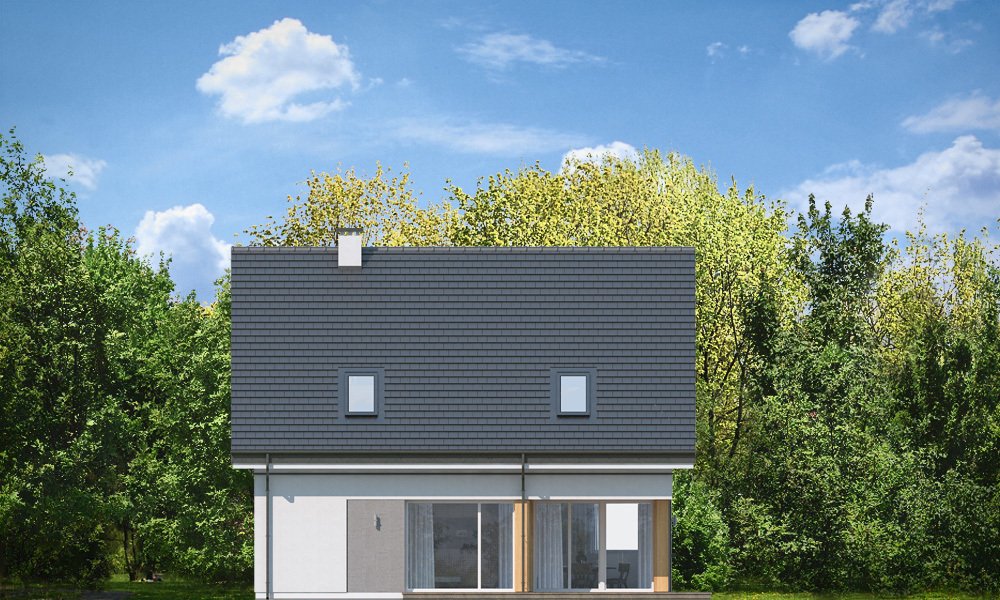 Viking 3 to kolejny dom z serii „Viking” - tym razem najmniejszy z kolekcji, parterowy, z poddaszem użytkowym, bez garażu, przeznaczony dla 3-4roosobowej rodziny. Budynek ma zwartą prostokątną bryłę przykrytą dwuspadowym symetrycznym dachem. Nowoczesne materiały i detale dają Vikingowi 3 dynamiczny a zarazem pełen uroku wygląd zewnętrzny. Duże przeszklenia, drewniane i włókowo -cementowe okładziny ścian, podział elewacji na poziome pasy urozmaicają elewacje budynku. Wejście podkreślono podcieniem z dużymi drzwiami z bocznym naświetlem. Elewację ogrodową ozdobiono szerokimi przeszkleniami salonu i jadalni, otwierającymi wnętrze na ogród, oraz narożnym podcieniem stanowiącym częściowe zadaszenie tarasu. Wnętrze domu : na parterze znajduje się salon z aneksem jadalnym, połączony z holem, kuchnia ze spiżarką, kotłownia i wc. Z holu dostępne są wygodne, dobrze oświetlone schody na poddasze. Na górze mamy trzy sypialnie z łazienką i aneksem pralni. Sypialnia rodziców ma swoją garderobę, a pozostałe sypialnie - szafy wnękowe. Viking 3 to prosty, nowoczesny, funkcjonalnie zaprojektowany dom. Będzie niedrogi w budowie i późniejszym utrzymaniu. Jest to propozycja dla Inwestorów, którzy mają nie za wielką działkę i nie mogą lub nie chcą wydać dużych pieniędzy na budowę swojego wymarzonego M. Projekt bardzo łatwo można dostosować do standardu NF40. Zapraszamy.