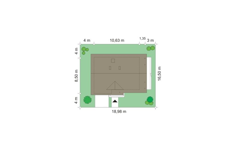 - Min. wymiary działki 18.98x16.50 m