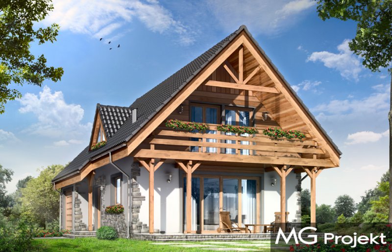 Wisełka to parterowy, jednorodzinny dom z poddaszem użytkowym, przekryty dwuspadowym, symetrycznym dachem. Budynek zaprojektowano z myślą o cztero-pięcioosobowej rodzinie. Dom może służyć również jako letniskowy. Architektonicznie budynek nawiązuje do południowych rejonów Polski. Drewniane wykończenia szczytów domu Wisełka, słupy z zastrzałami, balkon, kamienne okładziny elewacji - wszystkie te elementy przywodzą na myśl podhalańskie wzory. Jednocześnie inspiracja jest na tyle delikatna, że domek nie będzie wyglądał dziwnie wybudowany na Mazurach, Śląsku, czy Mazowszu. Wnętrze domu podzielono na część dzienną na parterze, oraz sypialnie na poddaszu. Na parterze zaprojektowano salon połączony z otwartą kuchnią i holem, oraz pięknym szerokim przeszklonym wyjściem na częściowo zadaszony taras i ogród. W centralnym miejscu umieszczono kominek i schody na górę. Dodatkowo na parterze przewidziano garaż i kotłownię. Na poddaszu znajdują się trzy sypialnie i łazienka. Pracownia posiada odbicie lustrzane, oraz wersję z dodatkowym pokojem zamiast garażu.