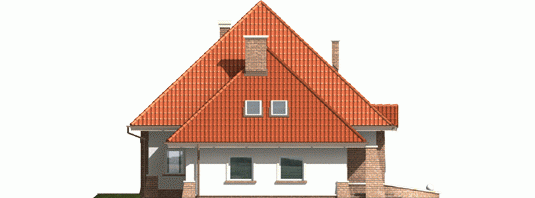 Dom zaprojektowano w technologii murowej ze stropem gęstożebrowym. Schody wewnętrzne drewniane. Dach o konstrukcji drewnianej, kryty dachówką ceramiczną. Elewację wykonano z tynku mineralnego, cokół z okładziny klinkierowej. Stolarka okienna drewniana.