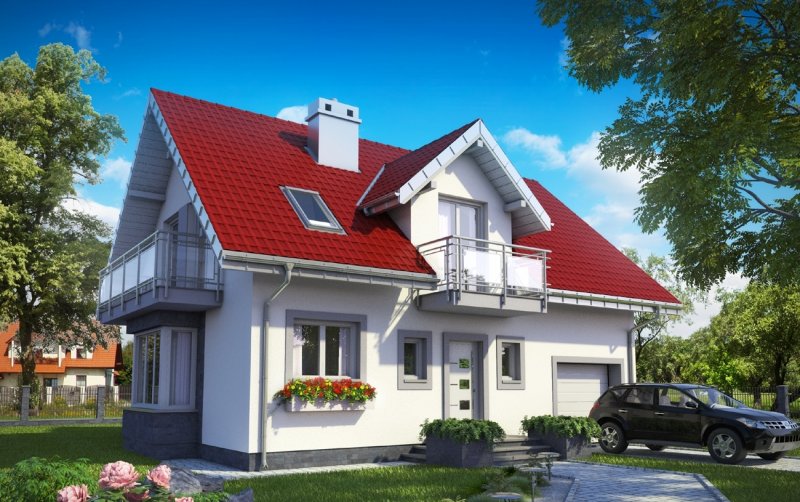 Parterowy dom z użytkowym poddaszem, z częścią gospodarczą przy ścianie bocznej to ekonomiczne rozwiązanie dla inwestorów indywidualnych w budownictwie mieszkaniowym. Takie są projekty domów małych i średnich: Zoja, Zofia i Helena z balkonem na ryzalicie w ścianie szczytowej. Wykorzystują przestrzeń pod dwuspadowym dachem nad obiema częściami budynku na strefę nocną z dwoma łazienkami. Oddzielono w niej różnicą poziomów główną z 4 sypialni. Na parterze jest pokój dzienny z jadalnią, kuchnia oraz przejście do garażu i kotłowni. Projekt domu Zofia Mini Neo jest jednym z mniejszych w Rodzinie Zofii, ale proponuje już dodatkowy pokój przy salonie i dużą łazienkę na parterze. Budynek ma, jak wszystkie wersje z pojedynczym garażem, zwarty obrys części mieszkalnej i garażowej oraz wspólny dla nich dach. Symetryczny rysunek lukarny z balkonem nad wejściem frontowym odróżnia go od Zoi, a łączy z Heleną. Projekt domu Zofia Mini Neo, przy mniejszej skali, zachowuje charakterystyczne dla rodziny Zofii detale: lukarny w obu połaciach i dekoracyjne balkony.