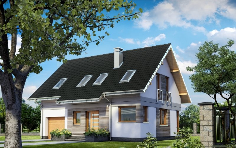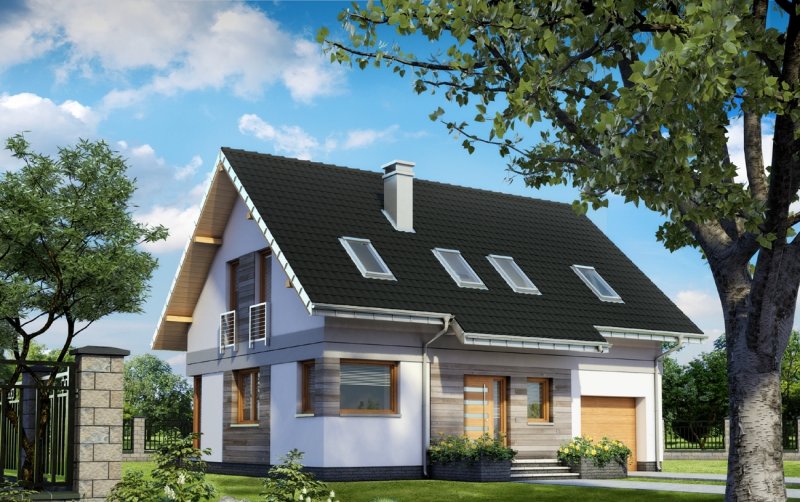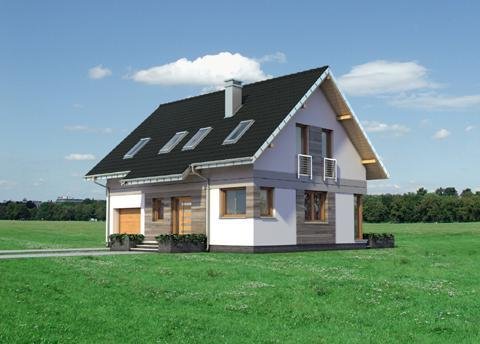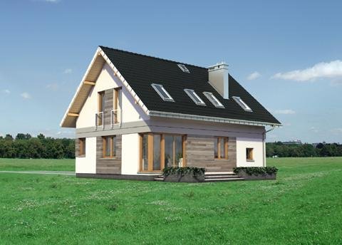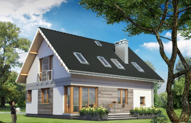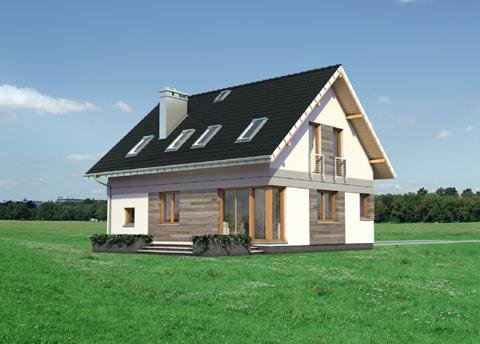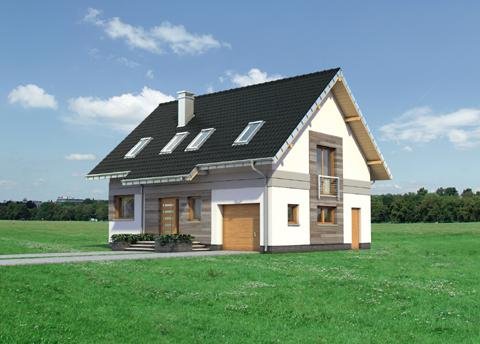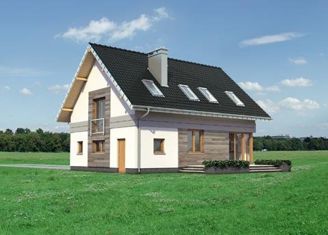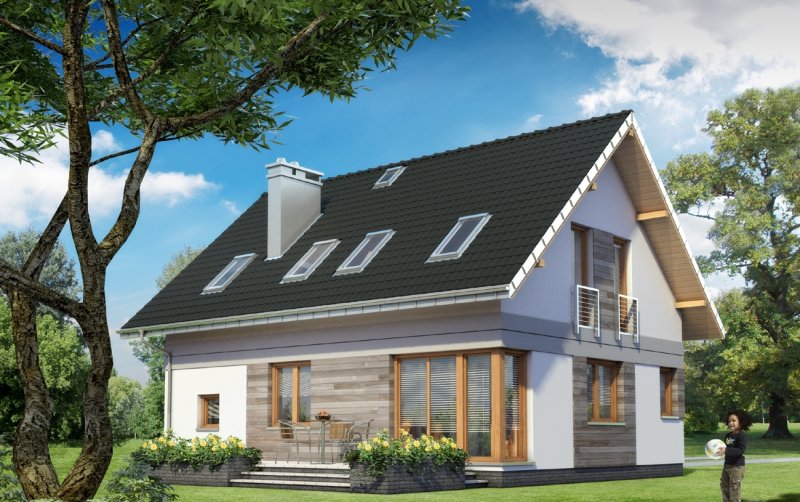 Projekt domu Zojka Neo jest jednym z dwóch najmniejszych w rodzinie Zojki, stworzonej z myślą o najczęstszych oczekiwaniach inwestorów planujących budowę małego domu z użytkowym poddaszem i wbudowanym garażem jednostanowiskowym. Wersja Neo i jeszcze mniejszy wariant Nano są najprostsze w rodzinie. Zrezygnowano w nich z charakterystycznych elementów większych Zojek: ryzalitu w ścianie bocznej i lukarny od frontu. Niezmieniona pozostała koncepcja ekonomicznej bryły, która pod jednym, dwuspadowym dachem zamyka część mieszkalną i gospodarczą. Na parterze rozlokowano strefę dzienną i garaż z kotłownią. Jednoprzestrzenny układ kuchni i salonu z częściowo otwartymi schodami nie przewiduje już w projekcie domu Zojka Neo dodatkowego pokoju tak, jak duże warianty. W to miejsce przeniesiono kominek i racjonalnie zblokowano jego trzony z kominem kotłowni, położonej za garażem. Cztery sypialnie na poddaszu są niewielkie ale utrzymano ustronny charakter głównej z nich, która ma własną łazienkę i dostępna jest z półpiętra. Detale architektoniczne: dach bez lukarn, brak balkonów i narożne okna wpisują się w energooszczędne i nowoczesne trendy stylistyczne.