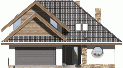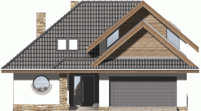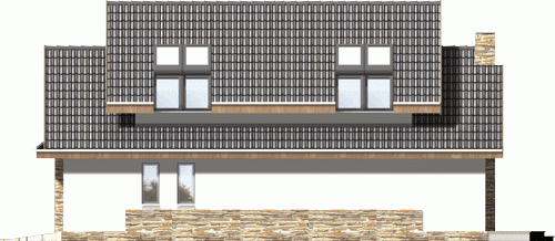 Ściany budynku zaprojektowano z betonu komórkowego ocieplonego styropianem lub w innej technologii w ramach adaptacji. Strop gęstożebrowy, więźba drewniana, pokrycie dachówką ceramiczną lub cementową. Inne pokrycia w ramach adaptacji. Elewacje tynkowane, elementy fasad okładane w zależności od projektu płytką klinkierową, deskami lub tynkowane.