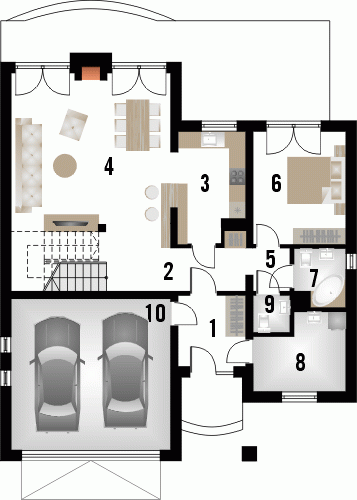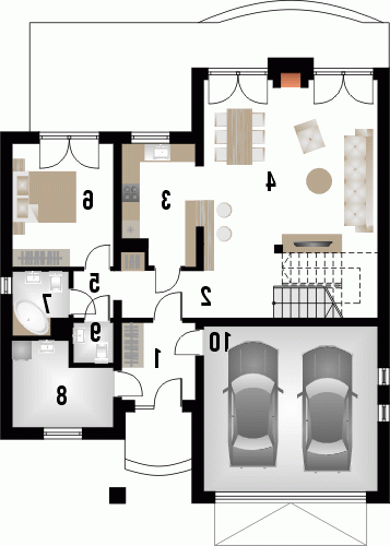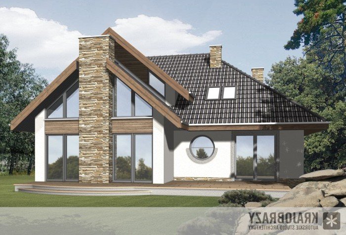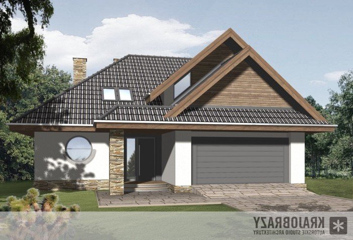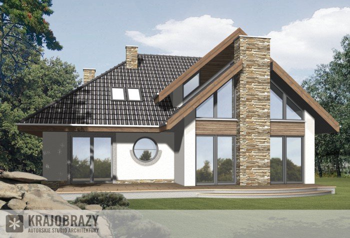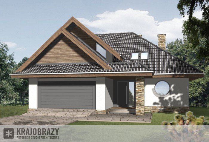 Dom jednorodzinny z grupy projektów nowoczesnych autorstwa pracowni KRAJOBRAZY. Atrakcyjny schemat funkcjonalny budynku został zamknięty w bryle o nowoczesnych detalach. Odpowiednio dobrane materiały wykończeniowe oraz kolorystyka zewnętrzna sprawiają, że dom wygląda współcześnie i będzie dobrze się prezentował w prawie każdym otoczeniu.