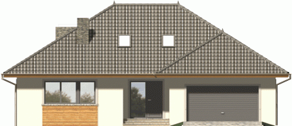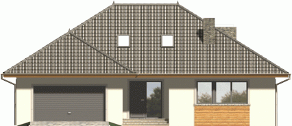 Ściany budynku zaprojektowano z betonu komórkowego ocieplonego styropianem lub w innej technologii w ramach adaptacji. Strop gęstożebrowy, więźba drewniana, pokrycie dachówką ceramiczną lub cementową. Inne pokrycia w ramach adaptacji. Elewacje tynkowane, elementy fasad okładane w zależności od projektu płytką klinkierową, deskami lub tynkowane.