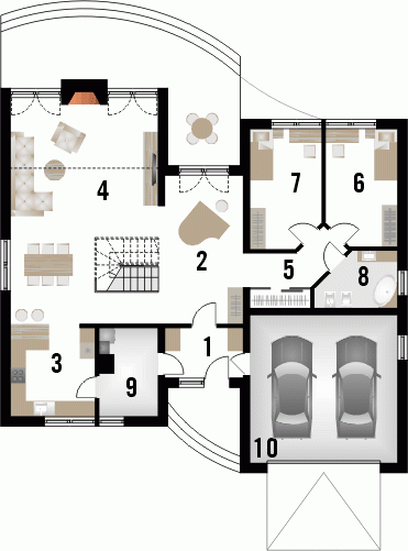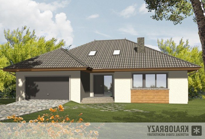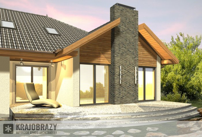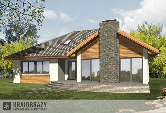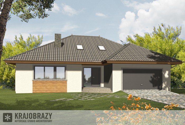 Dom jednorodzinny z grupy projektów nowoczesnych autorstwa pracowni KRAJOBRAZY. Atrakcyjny schemat funkcjonalny budynku został zamknięty w bryle o nowoczesnych detalach. Odpowiednio dobrane materiały wykończeniowe oraz kolorystyka zewnętrzna sprawiają, że dom wygląda współcześnie i będzie dobrze się prezentował w prawie każdym otoczeniu.