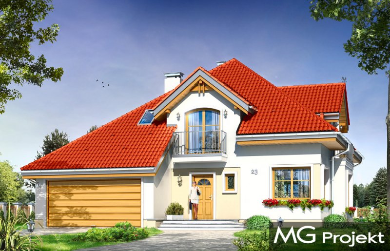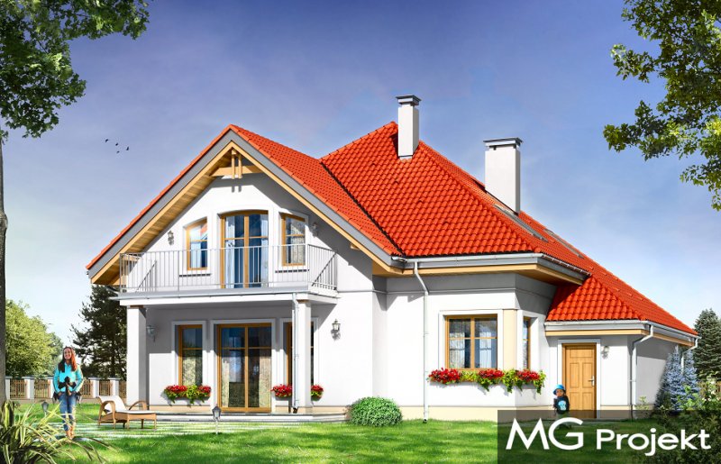 Amadeusz to reprezentacyjna willa jednorodzinna dla cztero-pięcioosobowej rodziny, parterowy z poddaszem użytkowym. Dom ma w sobie wszystko, czego można wymagać od wygodnej siedziby: zgrabną niebanalną sylwetkę i funkcjonalne obszerne wnętrze. Budynek jest jednocześnie prosty konstrukcyjnie, a przez to łatwy w budowie. Ponadto sylwetka domu zbudowana została na planie kwadratu i jest optymalna pod względem energooszczędności. Architektonicznie dom nawiązuje do przedwojennych willi, ale zastosowano w nim współczesny detal. We wnętrzu domu, na parterze zaprojektowano bardzo ładny salon połączony z aneksem jadalnym i holem z reprezentacyjnymi schodami , kuchnię z narożnym oknem i spiżarnią, oraz dodatkowy pokój z łazienką mogący służyć jako gabinet, ale też jako dodatkowa sypialnia. Na parterze zmieszczono też dwustanowiskowy wygodny garaż i dużą kotłownię. Na poddaszu mieszczą się trzy przestronne sypialnie – każda ze swoim balkonikiem i garderobami. Prócz sypialni zaprojektowano też piękną ładnie oświetloną łazienkę, którą można oczywiście podzielić na dwa osobne pomieszczenia – jeśli rodzice chcę mieć osobne wc z natryskiem. Nad poddaszem znajduje się niewielki strych. Pracownia posiada również wersję odbicia lustrzanego projektu.