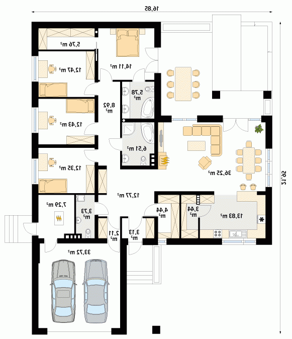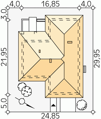 - Min. wymiary działki 24.85x29.95 m