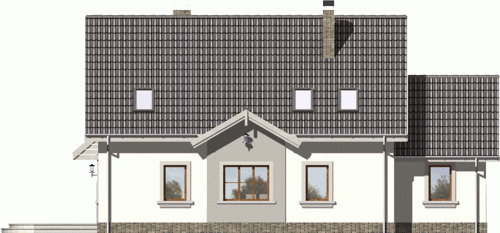 Ściany budynku zaprojektowano z betonu komórkowego z warstwą ocieplenia lub w innej technologii w ramach adaptacji. Strop gęstożebrowy, więźba drewniana, pokrycie dachówką ceramiczną lub cementową. Inne pokrycia w ramach adaptacji. Elewacje tynkowane, elementy fasad okładane w zależności od projektu płytką klinkierową, deskami lub tynkowane.