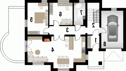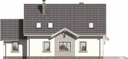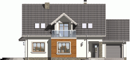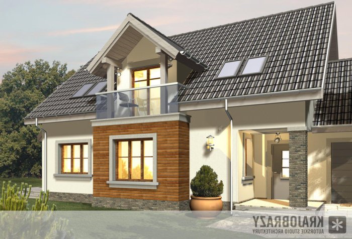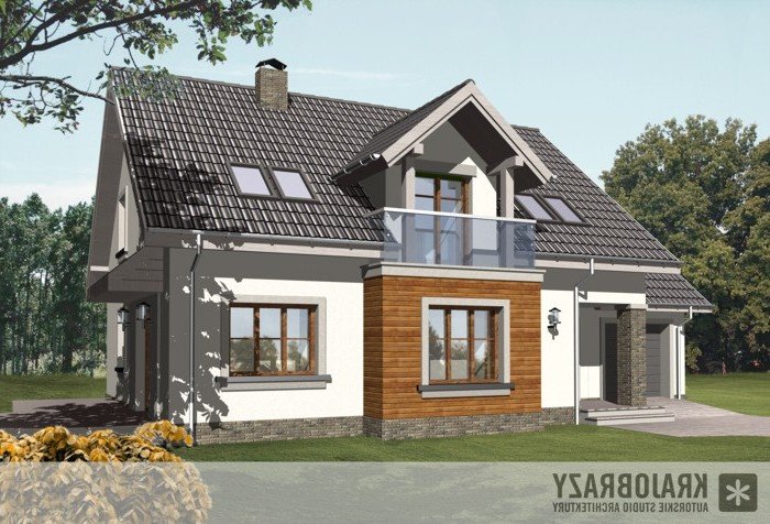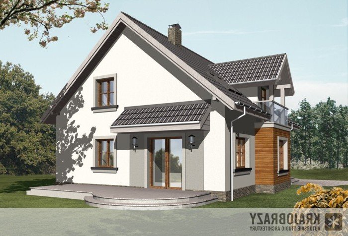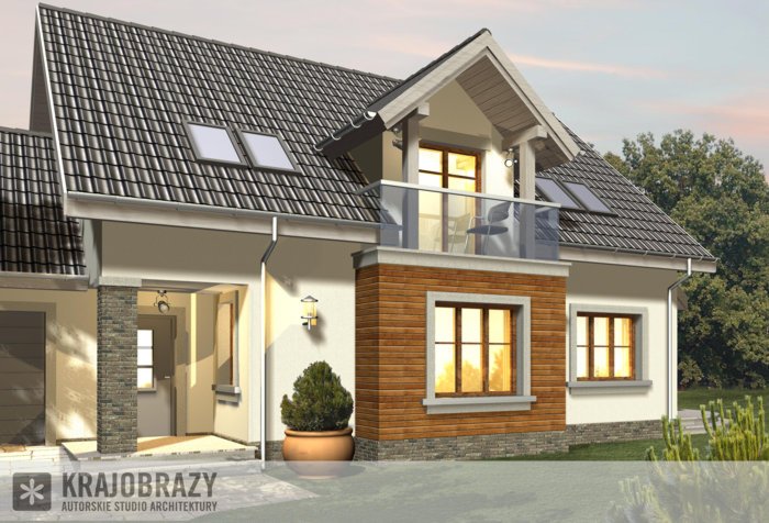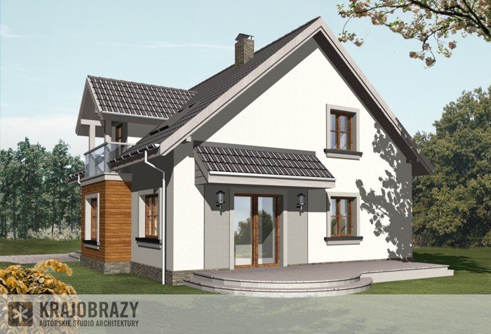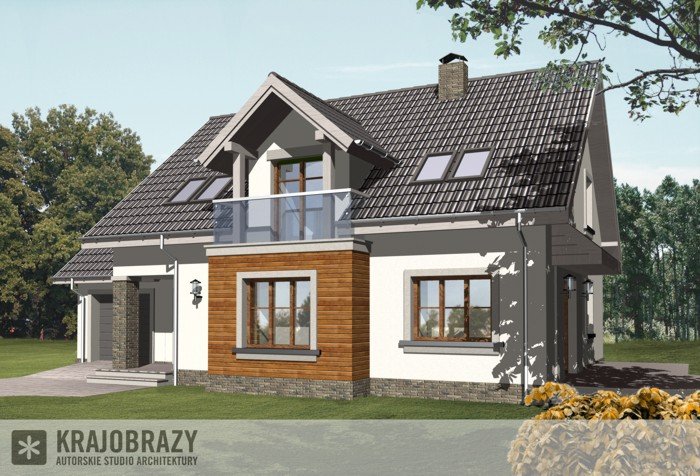 Dom jednorodzinny z grupy projektów nowoczesnych autorstwa pracowni KRAJOBRAZY. Atrakcyjny schemat funkcjonalny budynku został zamknięty w bryle o nowoczesnych detalach. Odpowiednio dobrane materiały wykończeniowe oraz kolorystyka zewnętrzna sprawiają, że dom wygląda współcześnie i będzie dobrze się prezentował w prawie każdym otoczeniu.