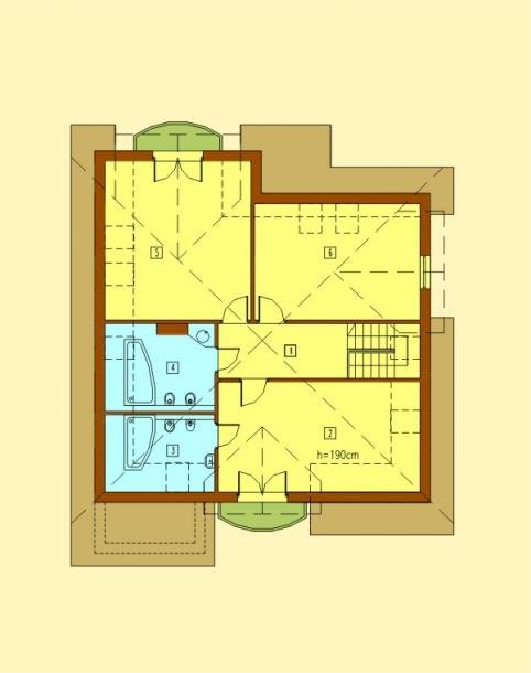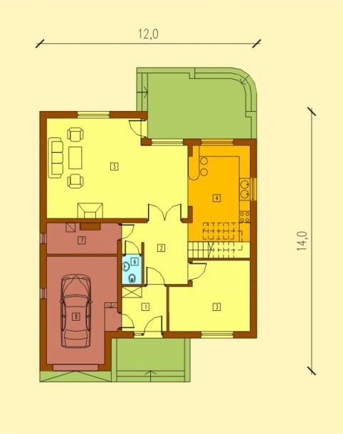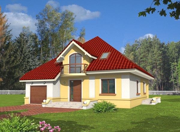 Jest to wygodny dom niepodpiwniczony z użytkowym poddaszem i wbudowanym garażem, przeznaczony dla 4-6 osobowej rodziny.