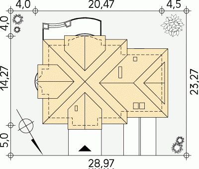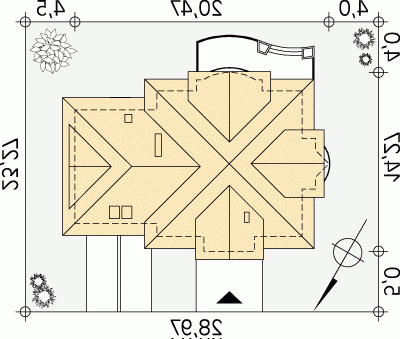 - Min. wymiary działki 28.47x23.77 m