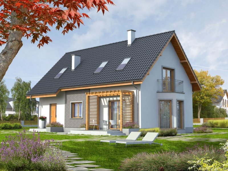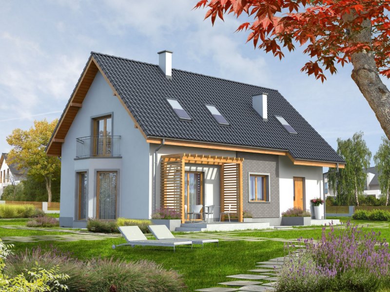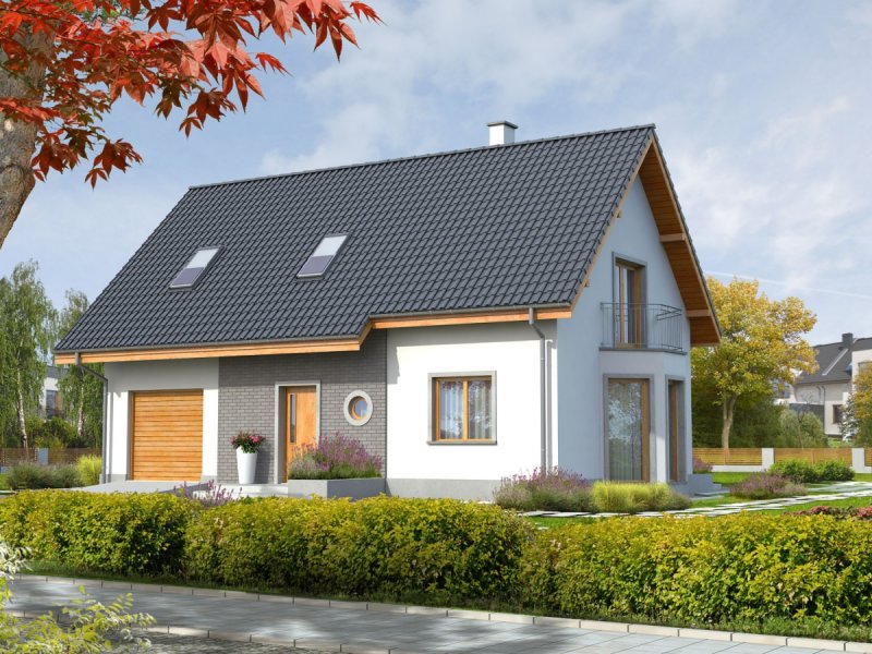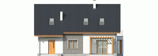 Dom parterowy z poddaszem użytkowym, niepodpiwniczony z garażem, przeznaczony dla 3-4 osobowej rodziny. Dom „Ben” wyróżnia klasyczna forma oraz nieskomplikowana bryła. Ze względu na ergonomiczne wnętrze dom ten, z całą pewnością można umieścić w kategorii domów energooszczędnych. Okładzina klinkierowa wkomponowana w elewację budynku dodaje mu niepowtarzalnego uroku, tworząc ciekawy kontrast z szykowną bielą tynku. „Bena” cechuje ponadto klarowny podział funkcjonalny ¬– na parterze znajduje się strefa dzienna z pokojem dziennym wraz z jadalnią, dużą kuchnią i spiżarnią, pomieszczeniem gospodarczym, a także łazienką. Atutem jest także obecność osobnego gabinetu, gdzie można spokojnie poświęcać się pracy. W razie potrzeby można urządzić w nim pokój dla gości. Poddasze przeznaczono na strefę nocną, którą tworzą dwa wygodne pokoje, łazienka, garderoba oraz sypialnia, w której istnieje możliwość wygospodarowania miejsca na garderobę.