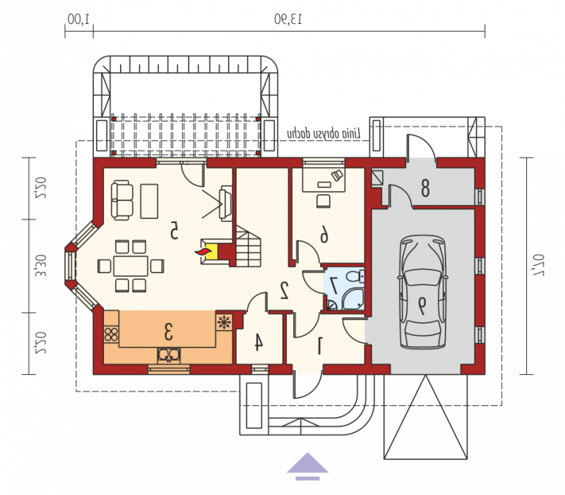 - Kąt nachylenia dachu 45.00°