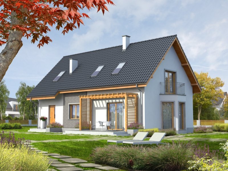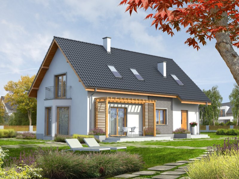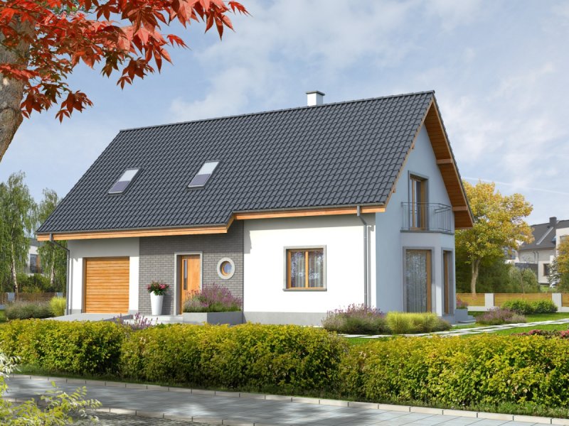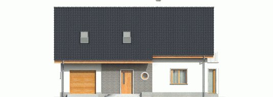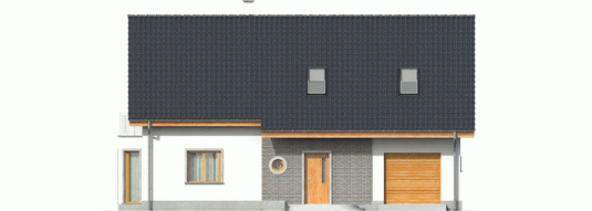 Dom parterowy z poddaszem użytkowym, podpiwniczony z garażem przeznaczony dla 3-4 osobowej rodziny. Dom „Ben II” jest większą wersją projektu „ Ben” . Wyróżnia go klasyczna forma oraz nieskomplikowana bryła. Ze względu na ergonomiczne wnętrze dom ten, z całą pewnością można umieścić w kategorii domów energooszczędnych. Okładzina klinkierowa wkomponowana w elewację budynku dodaje mu niepowtarzalnego uroku, tworząc ciekawy kontrast z szykowną bielą tynku. „Ben II” cechuje ponadto klarowny podział funkcjonalny ¬– na parterze znajduje się strefa dzienna z pokojem dziennym wraz z jadalnią, dużą kuchnią i spiżarnią, pomieszczeniem gospodarczym, a także łazienką. Atutem jest także obecność osobnego gabinetu, gdzie można spokojnie poświęcać się pracy. W razie potrzeby można urządzić w nim pokój dla gości. Poddasze przeznaczono na strefę nocną, którą tworzy sypialnia z garderobą, dwa wygodne pokoje, łazienka oraz garderoba. Dom dostępny także w wersji bez piwnicy oraz o mniejszej powierzchni użytkowej około 119 m² – „Ben” z podpiwniczeniem lub bez.