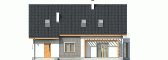 Dom zaprojektowany w technologii murowej ze stropem gęstożebrowym. Dach o konstrukcji drewnianej pokryty dachówką płaską lub inną o podobnych parametrach. Schody wewnętrzne: do podpiwniczenia – żelbetowe, na poddasze – drewniane. Elewacje i cokół wykończono tynkiem mineralnym, na fragmentach cegłą klinkierową. Stolarka okienna drewniana lub PCV. Rolety zewnętrzne w systemie CleverBox firmy BeClever.
