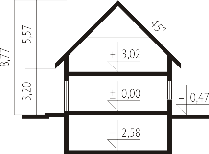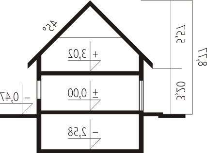 - Kąt nachylenia dachu 45.00°