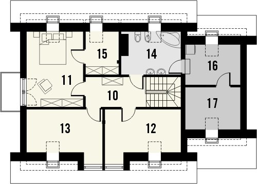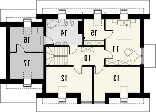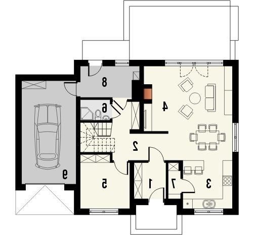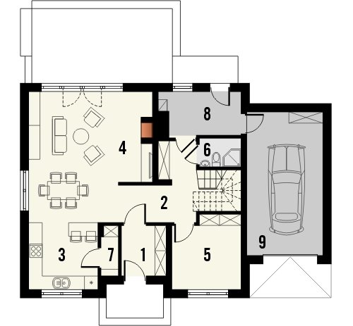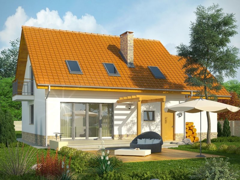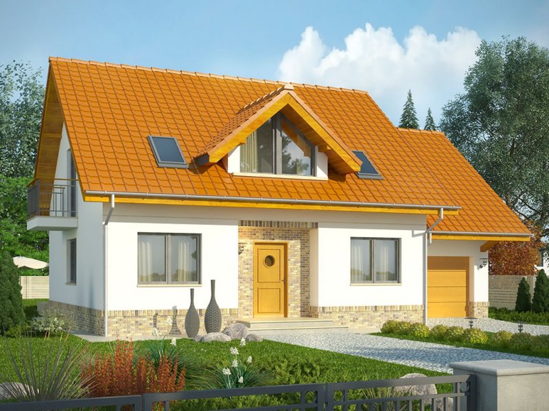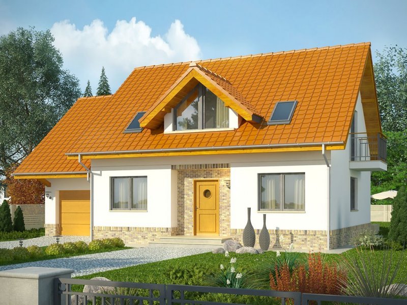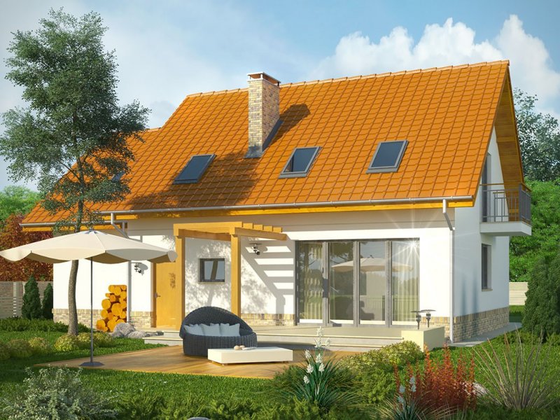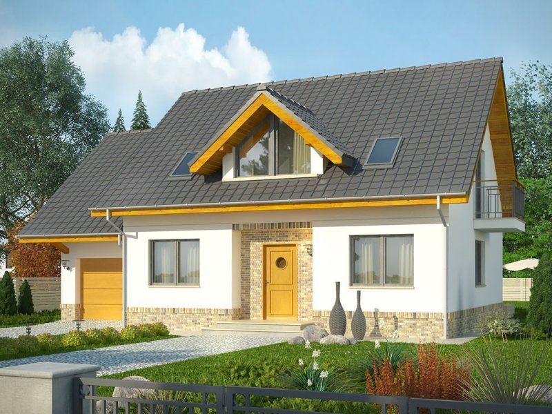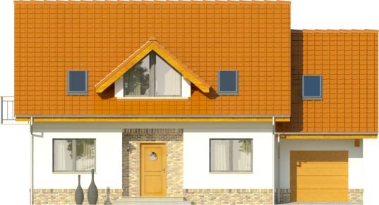 Czar to prosty domjednorodzinny kryty dachem dwuspadowym, z czarującą lukarną ponad wejściem.Dostępny jest w wariantach z garażem lub bez, istnieje także opcja zamówieniadokumentacji w odbiciu lustrzanym. Dom posiada funkcjonalniezaprojektowane wnętrza. Na parterze nalazł się salon z jadalnią i otwartąkuchnią wyposażoną w spiżarkę. Dodatkowy pokój znalazł się od frontu, z tyłu przewidzianopomieszczenie gospodarcze z wyjściem na ogród, skomunikowane z garażem, jak iczęścią mieszkalną domu. Na piętrze znalazły się trzy sypialnie oraz dużałazienka. Nad garażem uwzględniono pralnię oraz strych.Strefa wejściowa obłożonajasną płytką klinkierową jest ciekawym akcentem pośrodku elewacji frontowej.Niewielka pergola od strony ogrodu tworzy przyjemną, częściowo zadaszonąprzestrzeń rekreacyjną.
