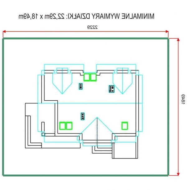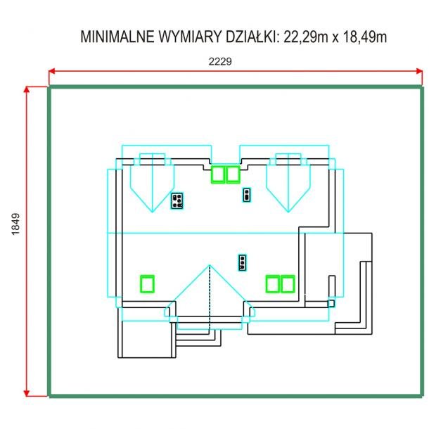 - Min. wymiary działki 21.09x17.49 m