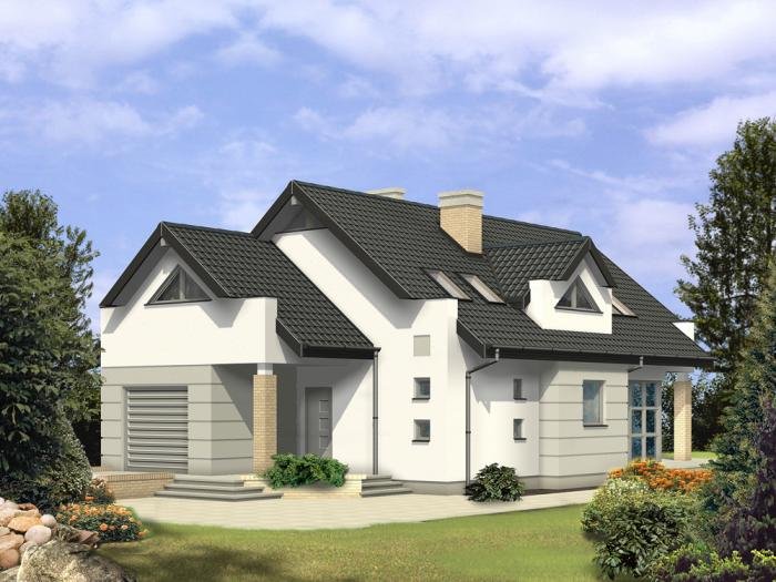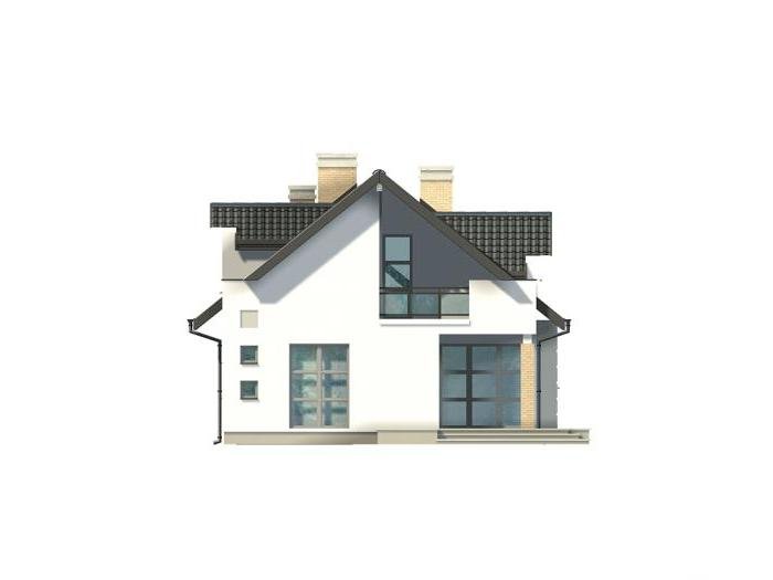 przestronny jednorodzinny dom parterowy, z użytkowym poddaszem, niepodpiwniczony; doskonale nadaje się na wąską działkę