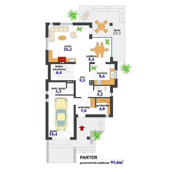 - parteru 95,60 m²