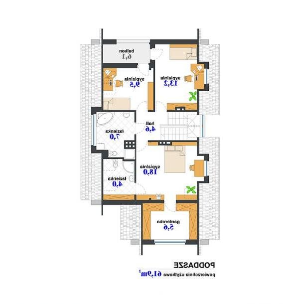- poddasza 61,90 m²